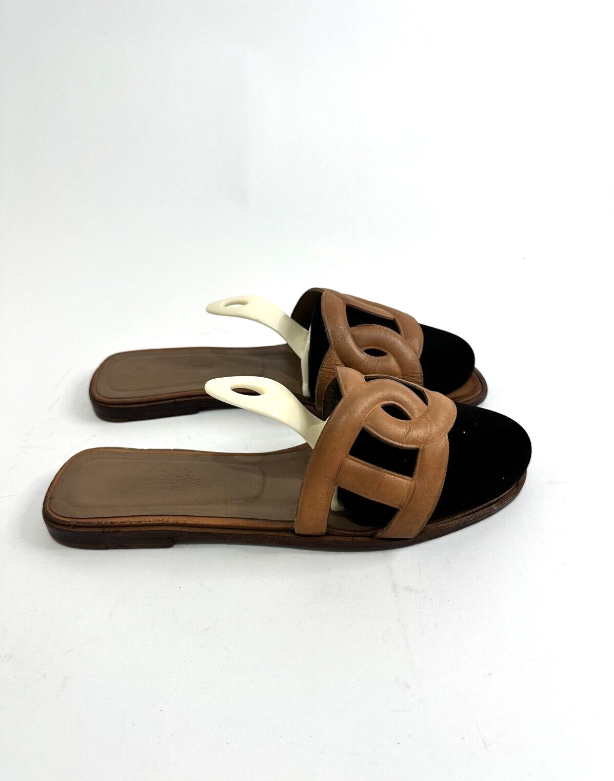 Hermes Brown Leather Aloha Flat Sandals Size 38 EU