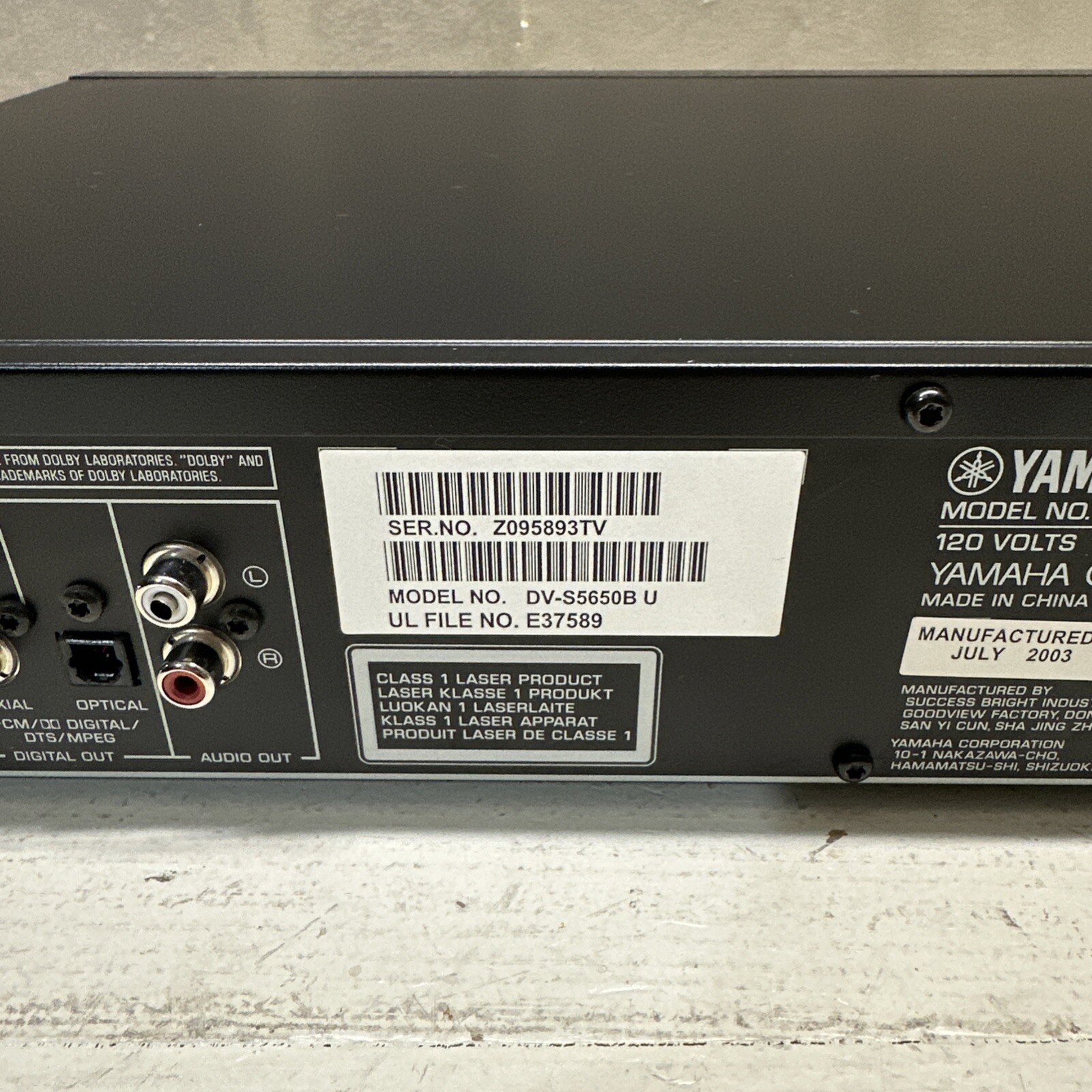 Yamaha Natural Sound DVD Player DV-S5650 Progressive Scan No Remote