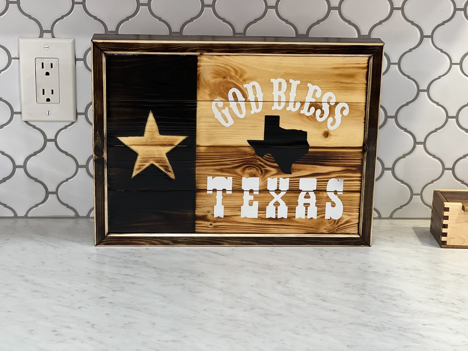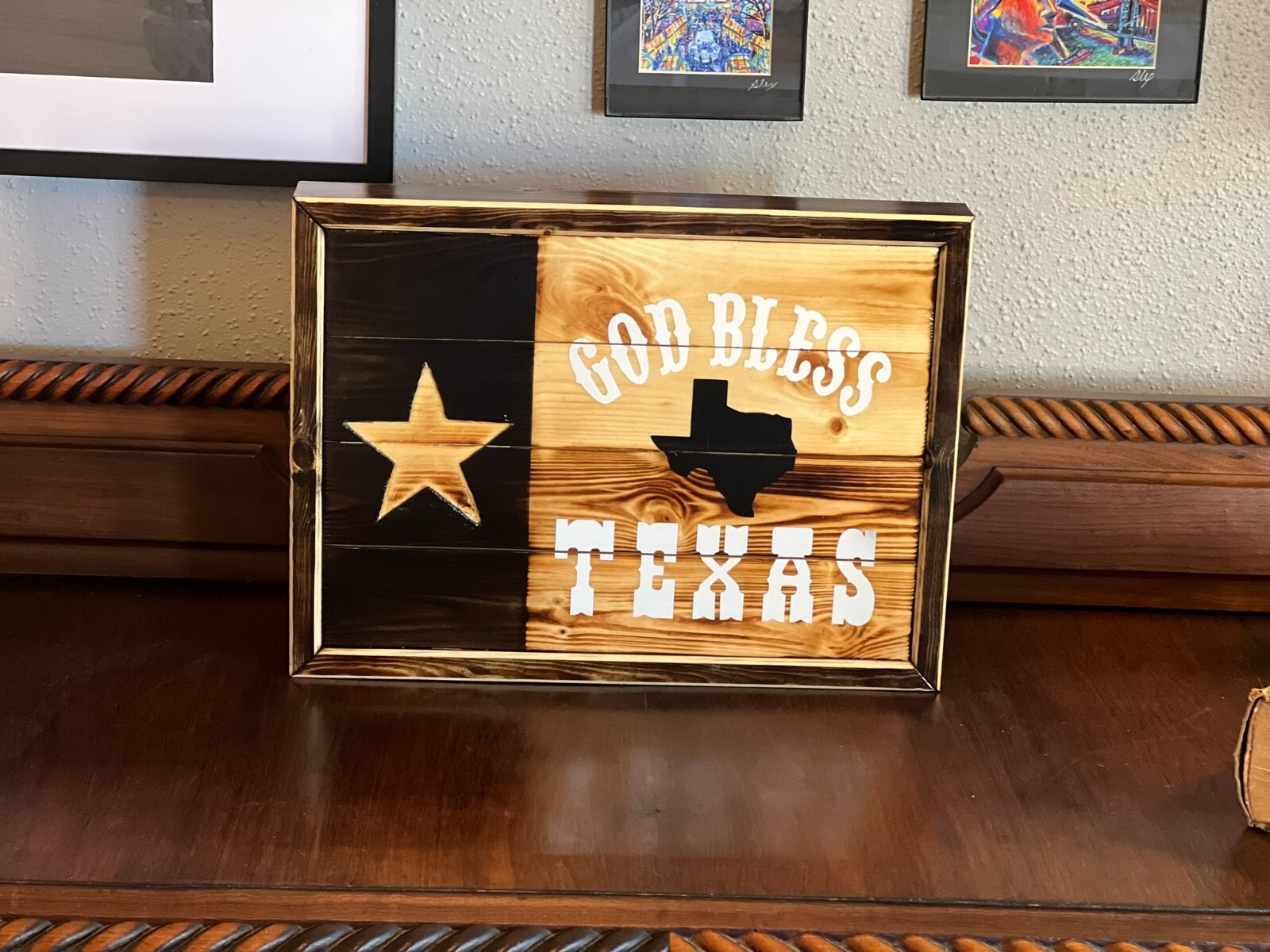 Rustic Handmade Wooden Texas Flag 12x16 Subdued Black and White Art Piece.