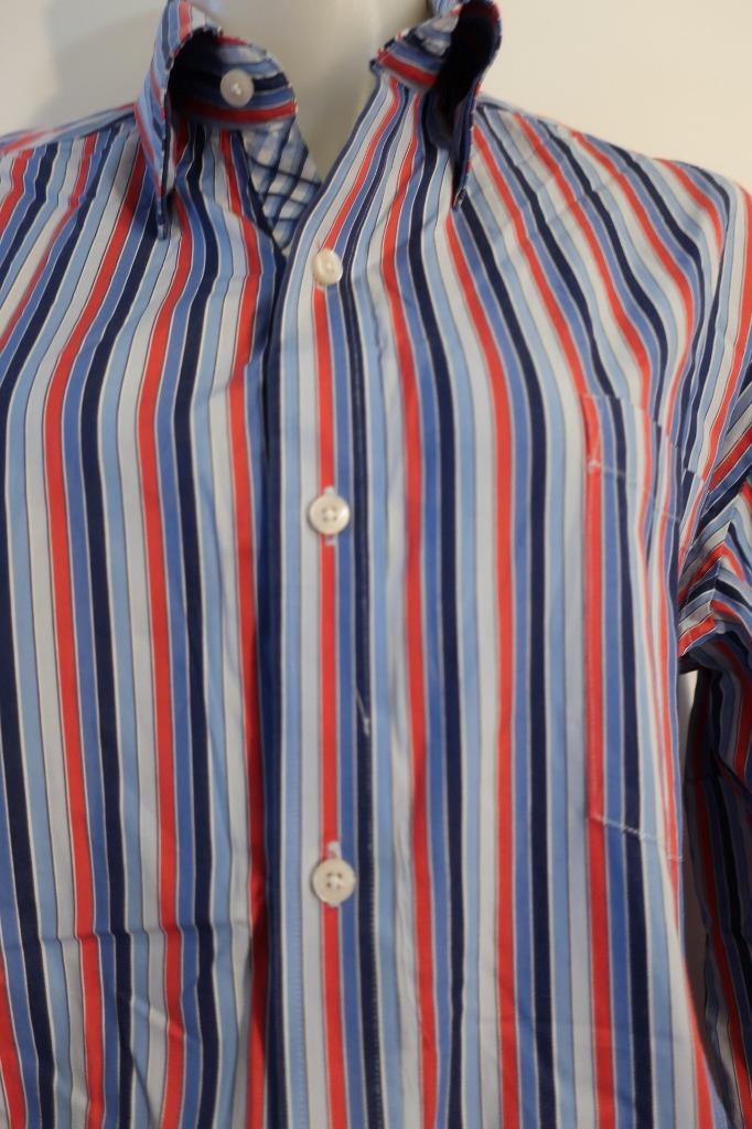 как выглядит Mens Tailorbyrd Collection Blue Red Striped Button-Up Dress Shirt XL фото