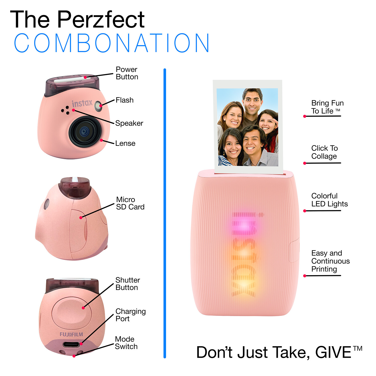 Fujifilm Instax Pal Digital Camera Link 3 Printer Printer Case Pink