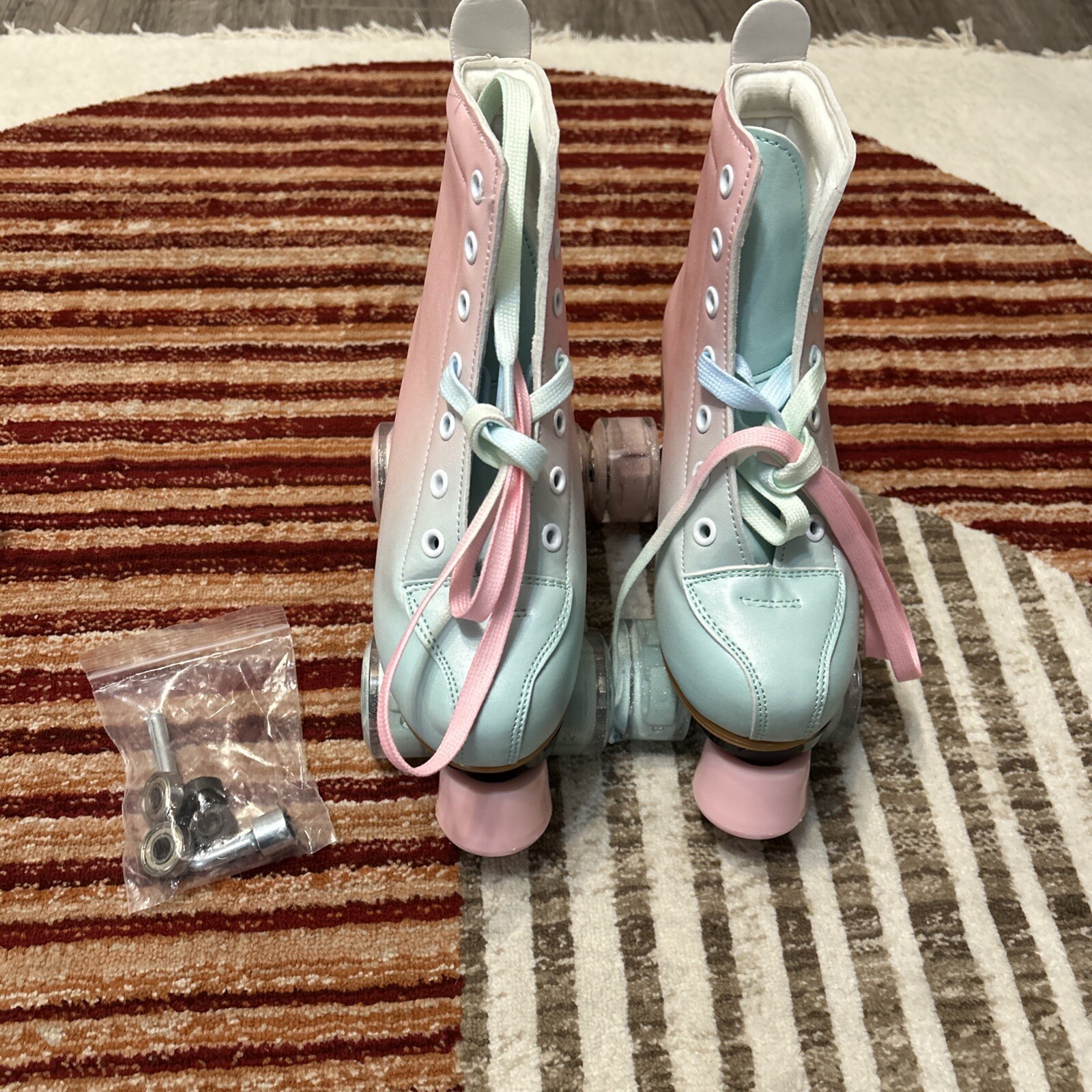 Roller Skates for Girls Women Cozy PU Leather Gradient Color Flash Wheels M7