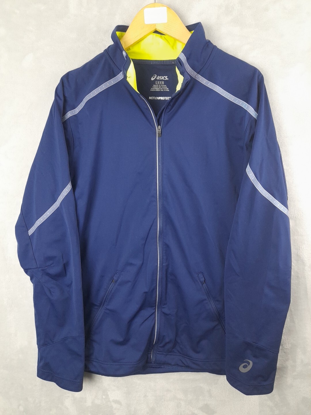 как выглядит Asics Mens Full Zipped Lightweight Jacket Motion Protect Large Blue фото