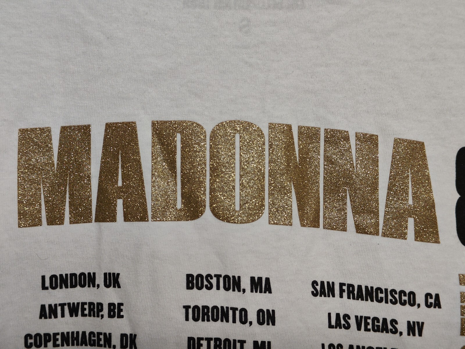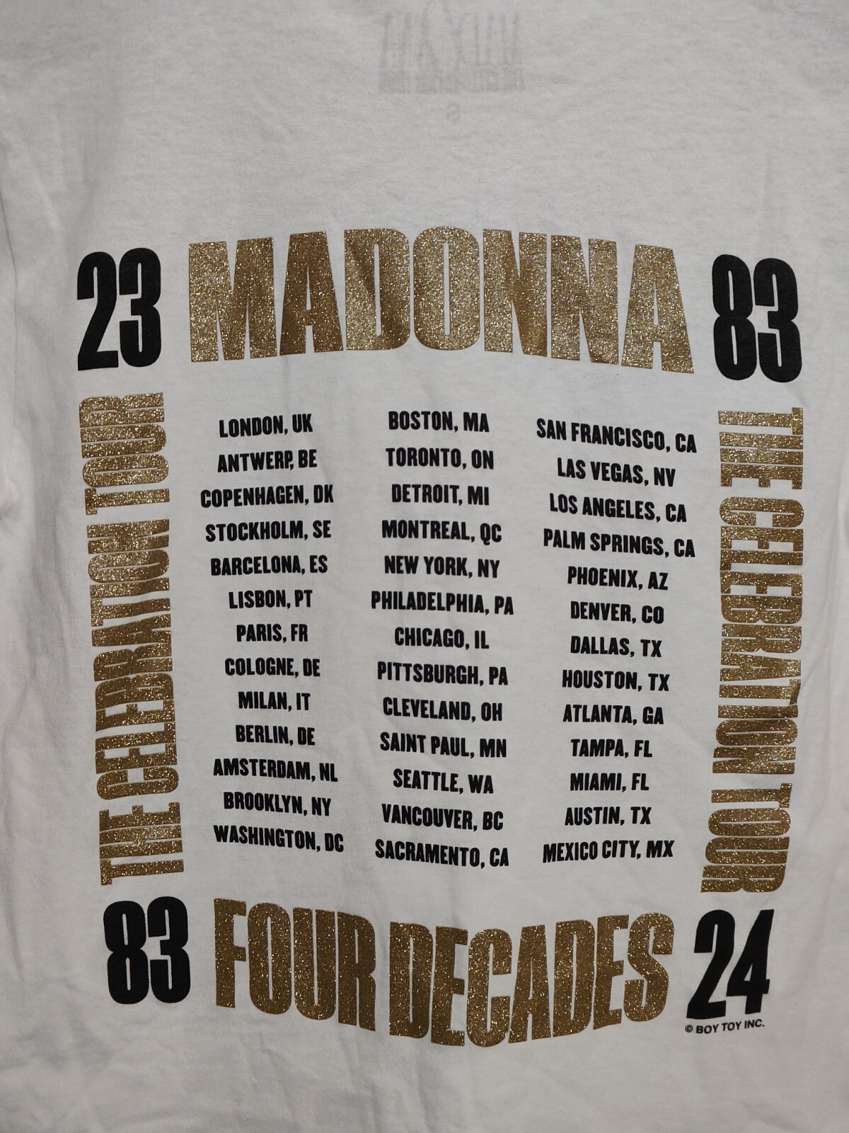 как выглядит MADONNA CELEBRATION TOUR SHIRT SMALL GOLD GLITTER LETTERING POP UP BOY TOY фото