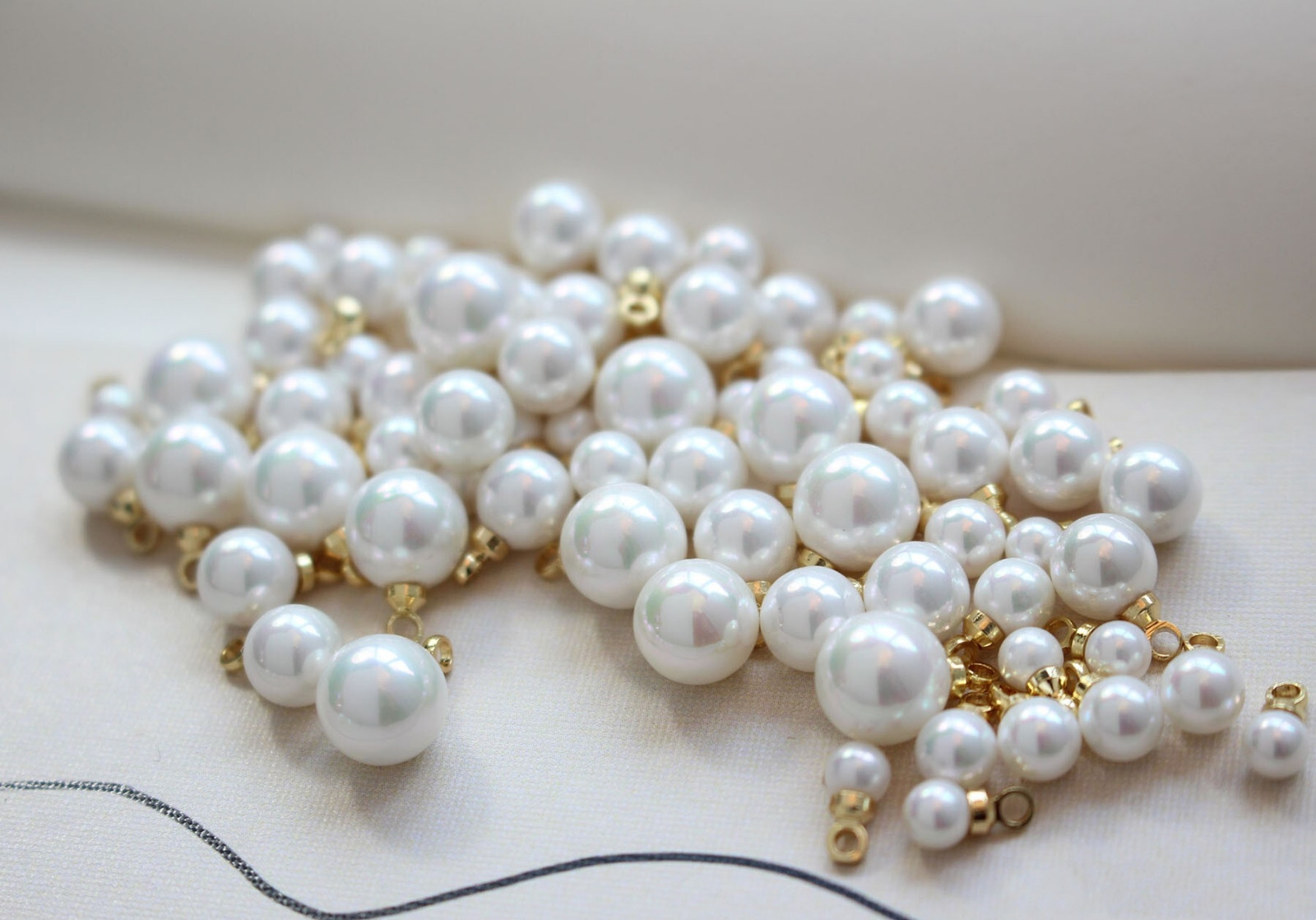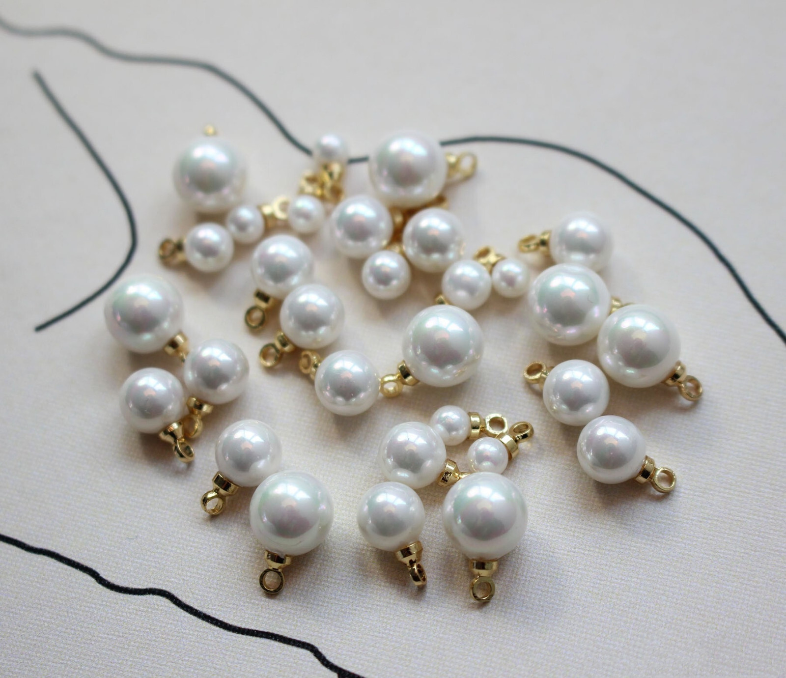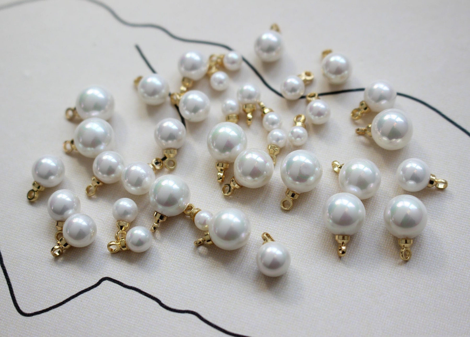 10pcs Round Ball Pearl Charm,Artificial Pearl Pendant,Earring Charm Connectors