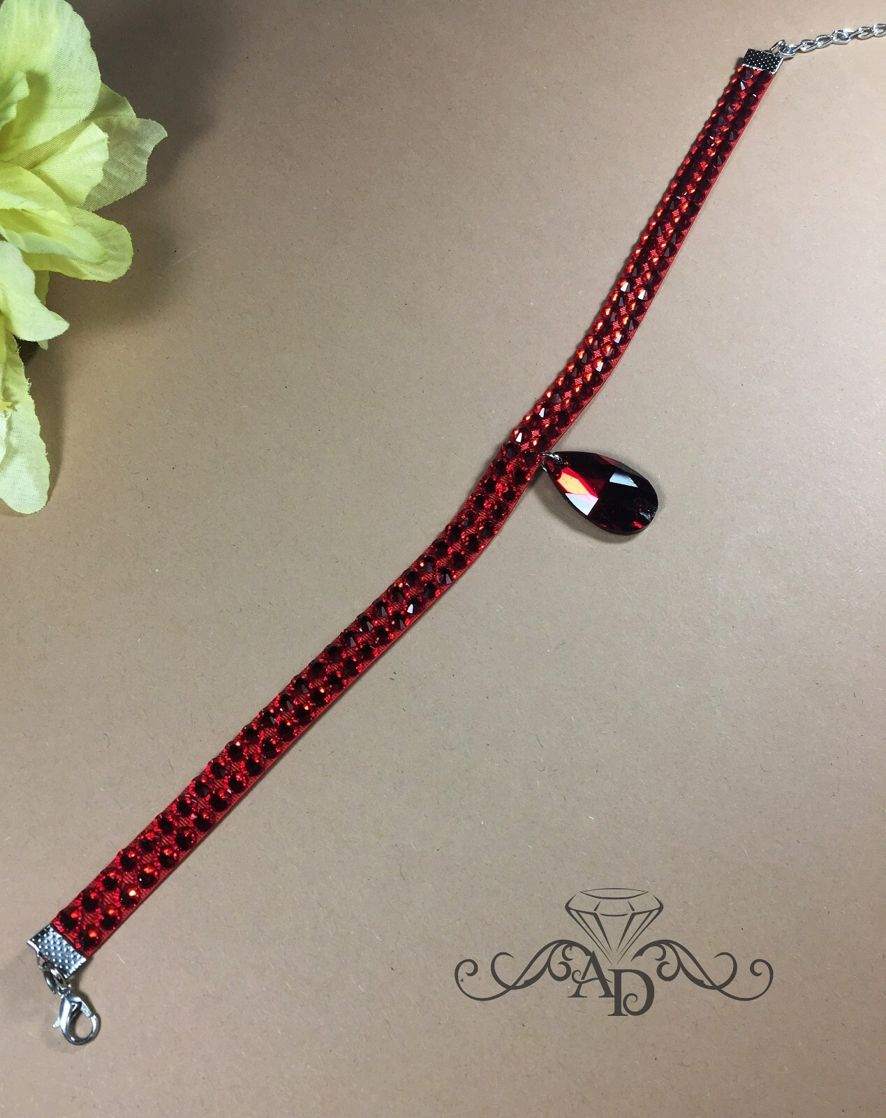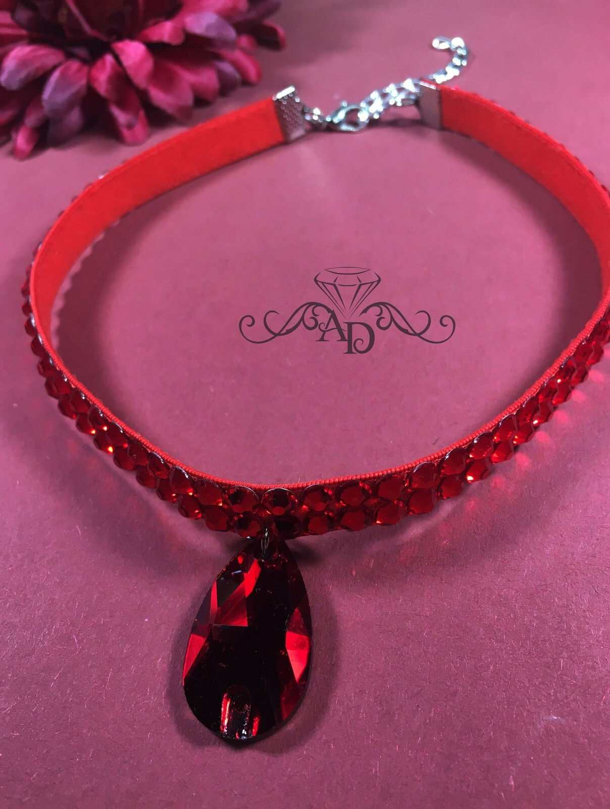 Dance red choker Bellydance red choker Red rhinestone choker Ballroom red choker