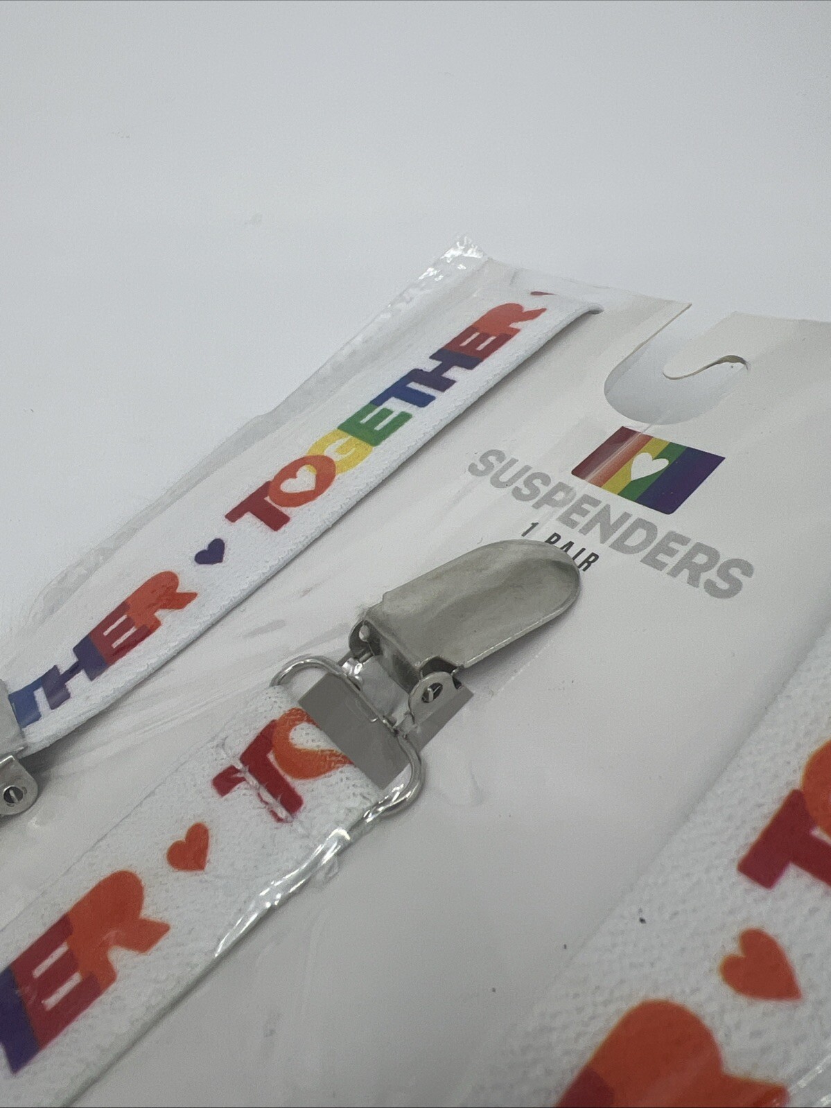 Unisex Suspenders 1-1/2Clips, Snaps Rainbow Spell Out-TOGETHER NEW