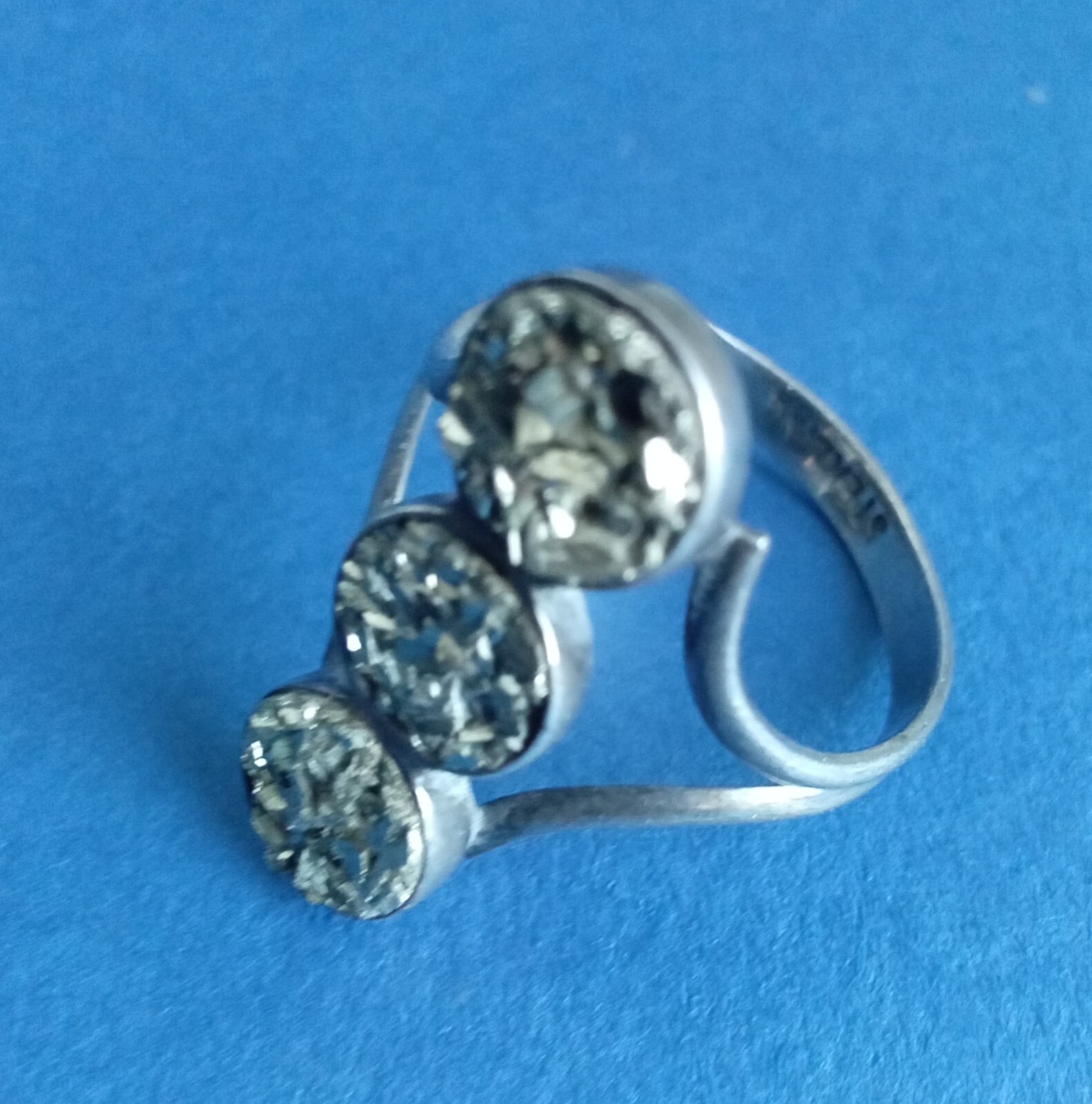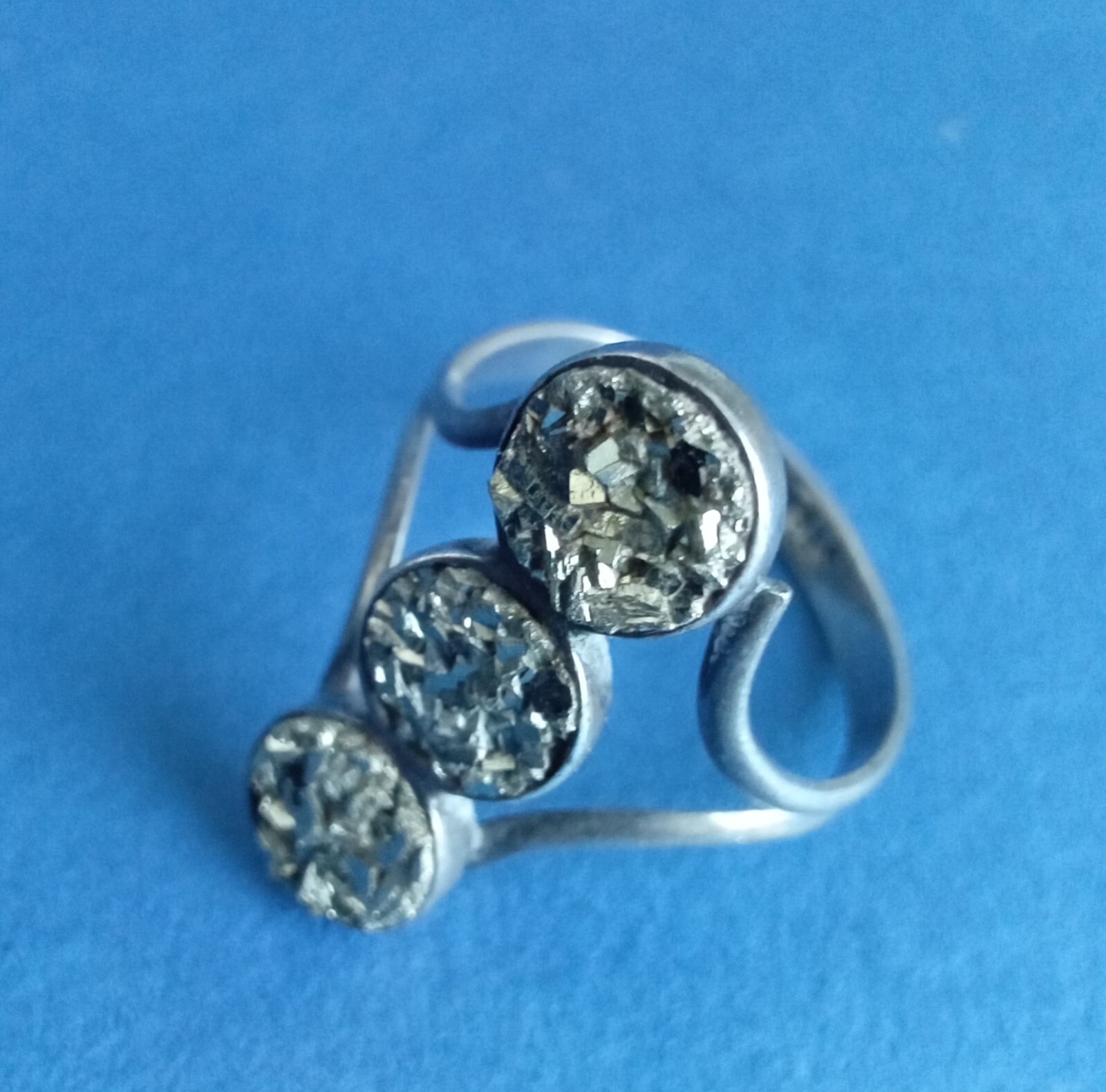 как выглядит 925 Sterling Silver Raw Pyrite Gemstone Ring фото
