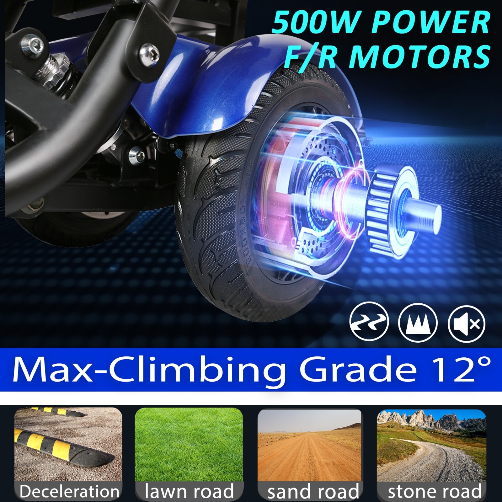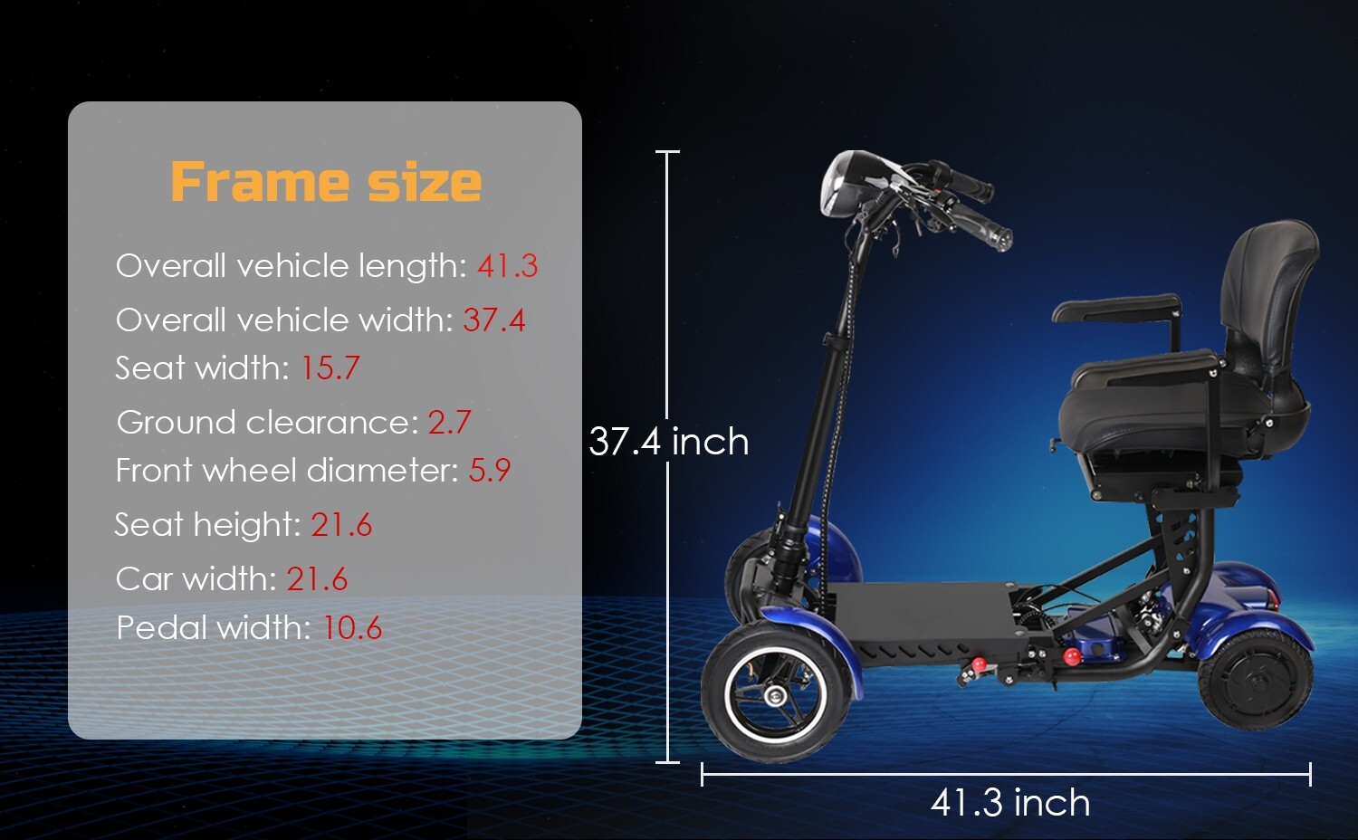 Foldable 4 Wheel Mobility Scooter Folding Drive Device for Seniors Adults Blue