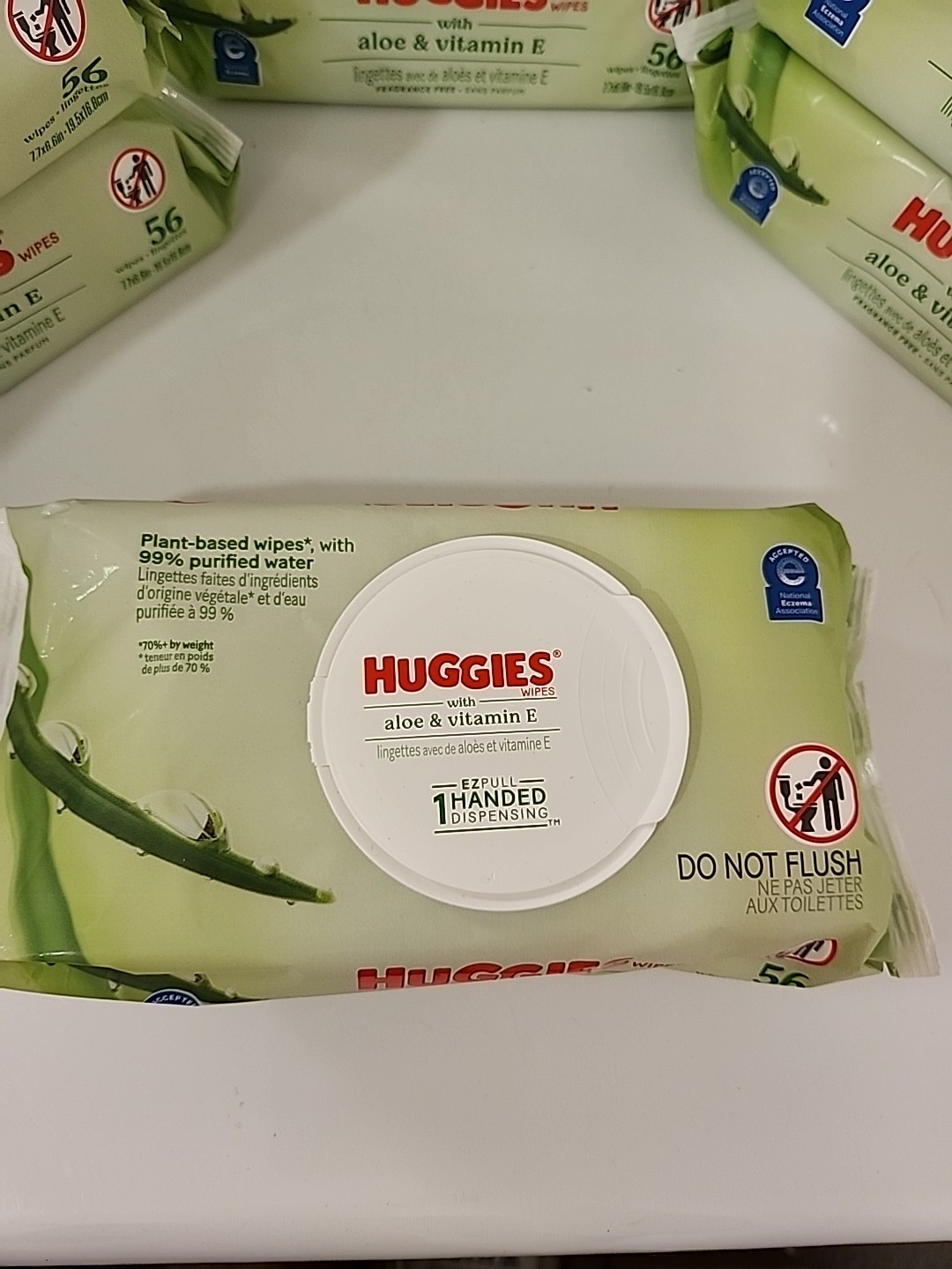 как выглядит Lot Of 7 Huggies Aloe Vitamin E Wipes, Unscented, 7 Pack, 56 ct Each New фото