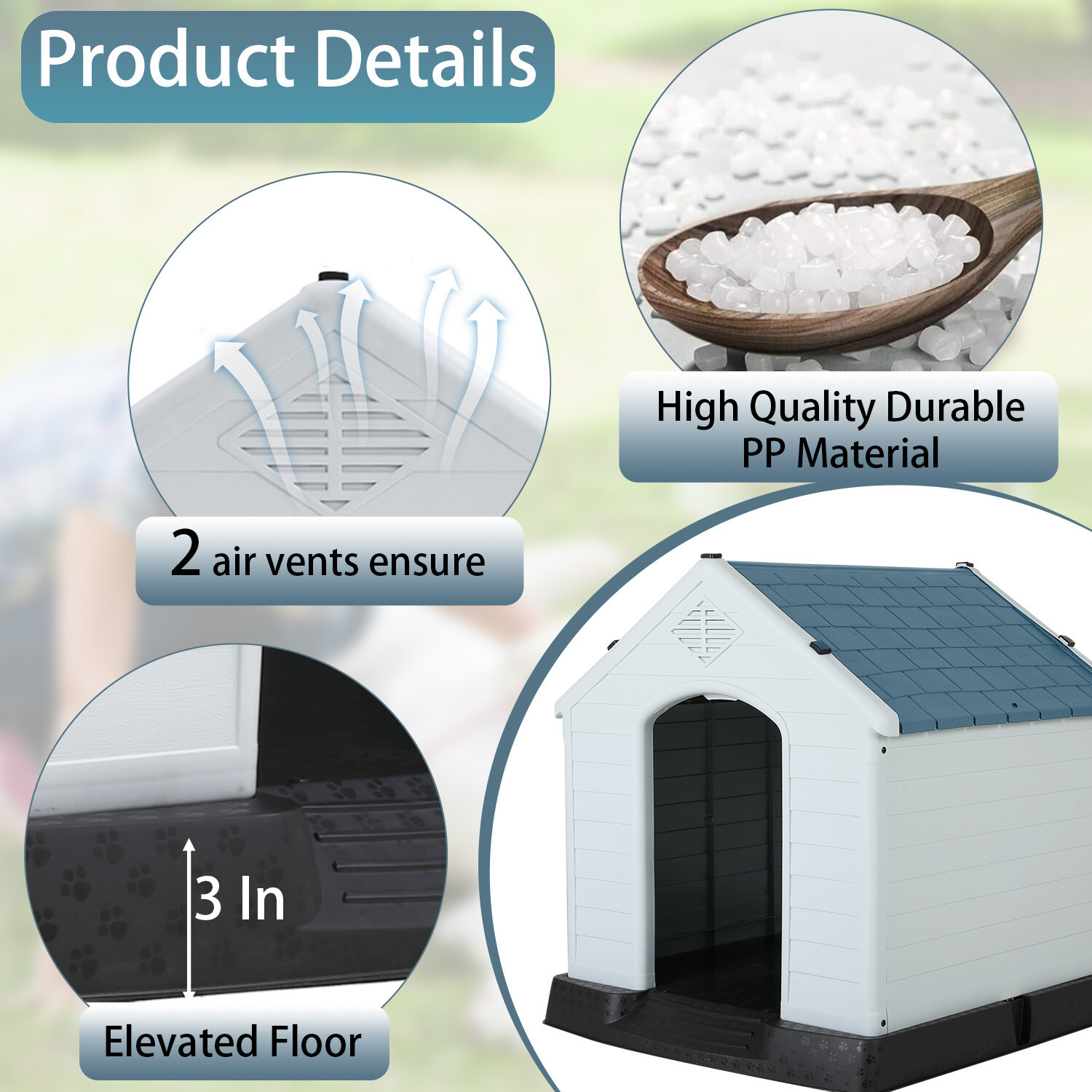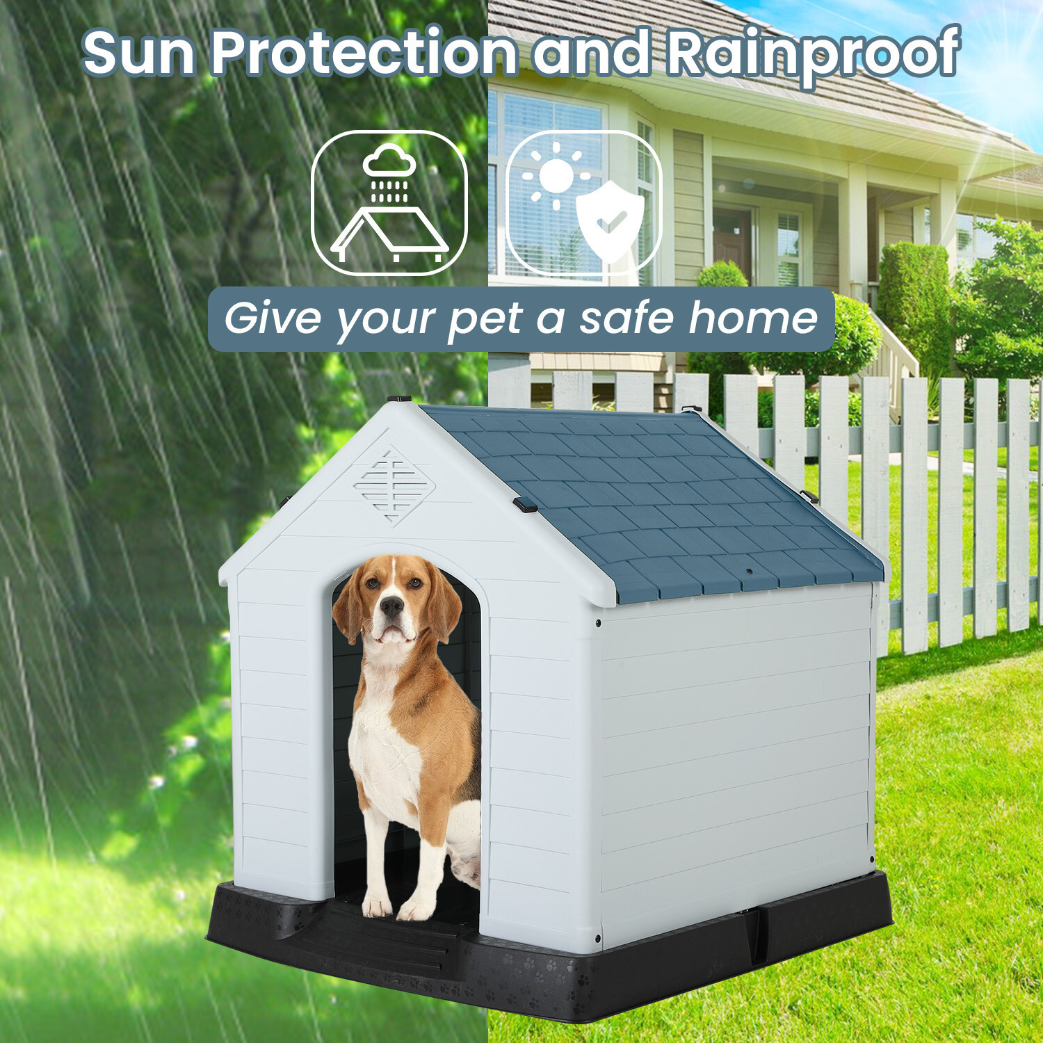 Dog House Indoor Outdoor Insulated Kennel Durable Plastic Dog House w/ Air Vents