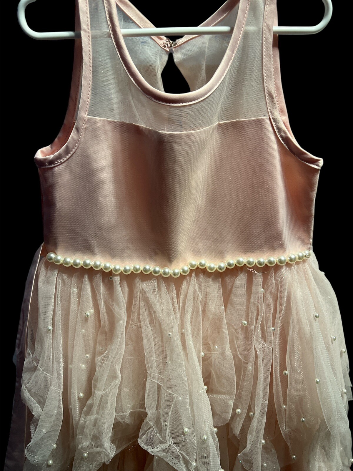 как выглядит American Princess Kids Tulle High Low Layered Pink Dress Pearls Size 7 фото