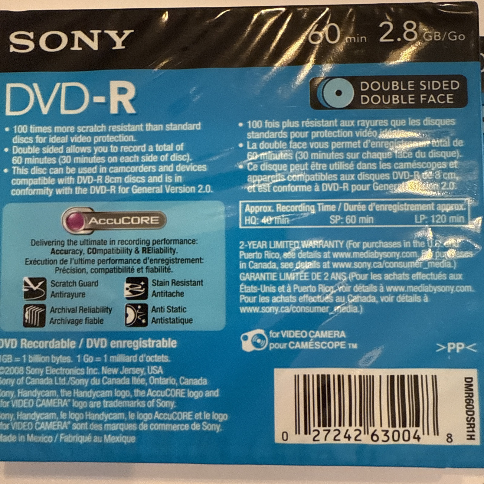 Sealed 2 Pack Sony Handycam 2.8 GB 60 Minute Double Sided Double Face DVD-R