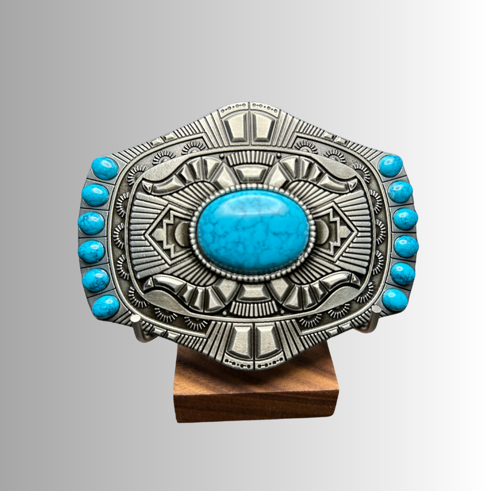 Women's Western Turquoise Belt Buckle Vintage Silver Tone 4 x 3
