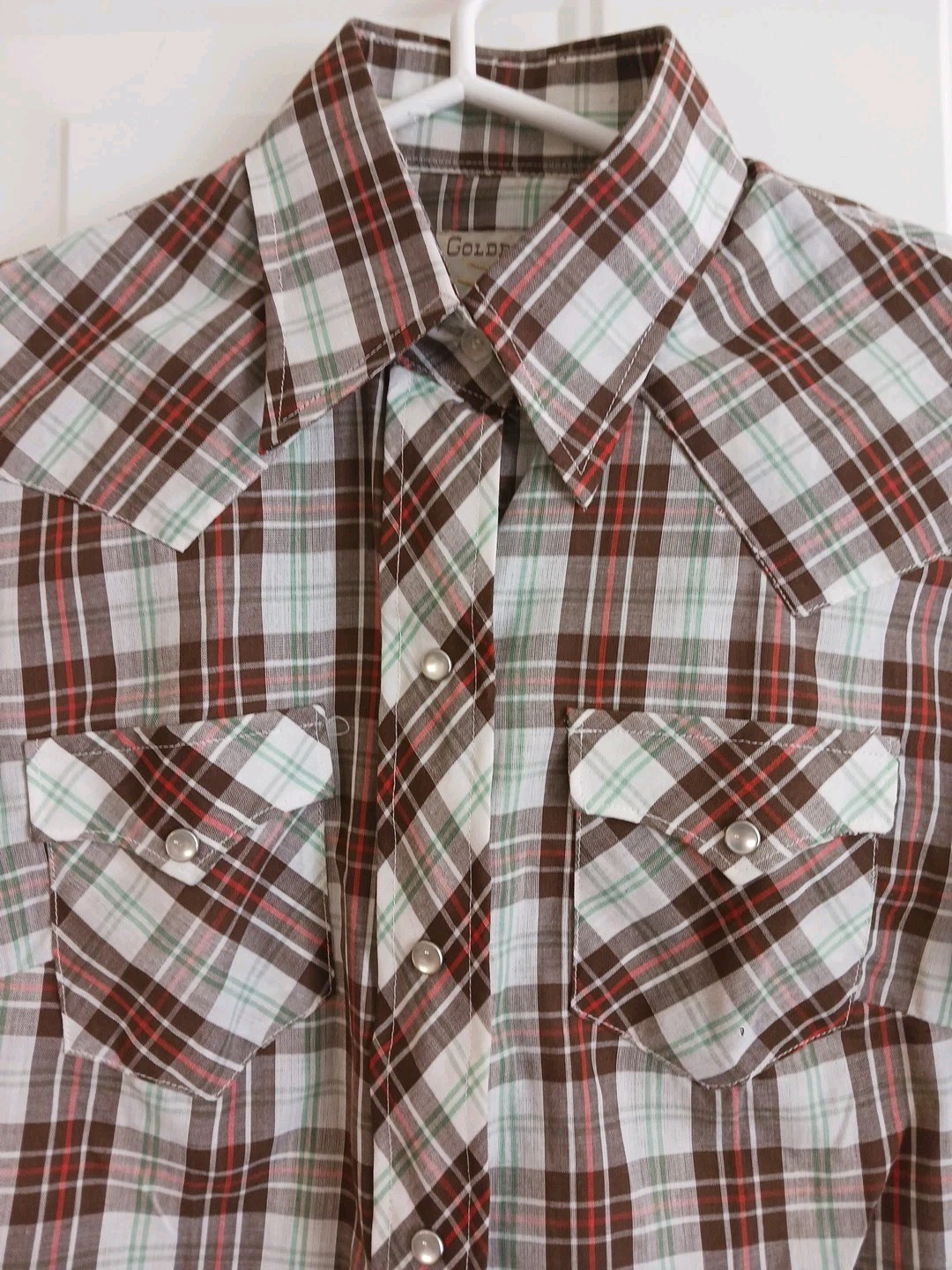 как выглядит VTG 60s 70s Golden Spur Pearl Snap Shirt Western Plaid Cowboy Rodeo 10/32 Size S фото
