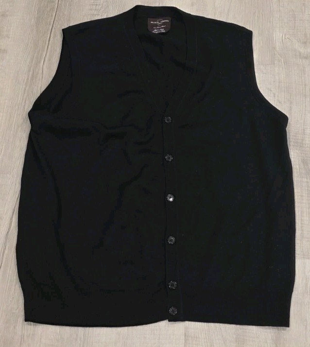 Black Brown Mens Merino Wool Black Cardigan Vest, Size Large