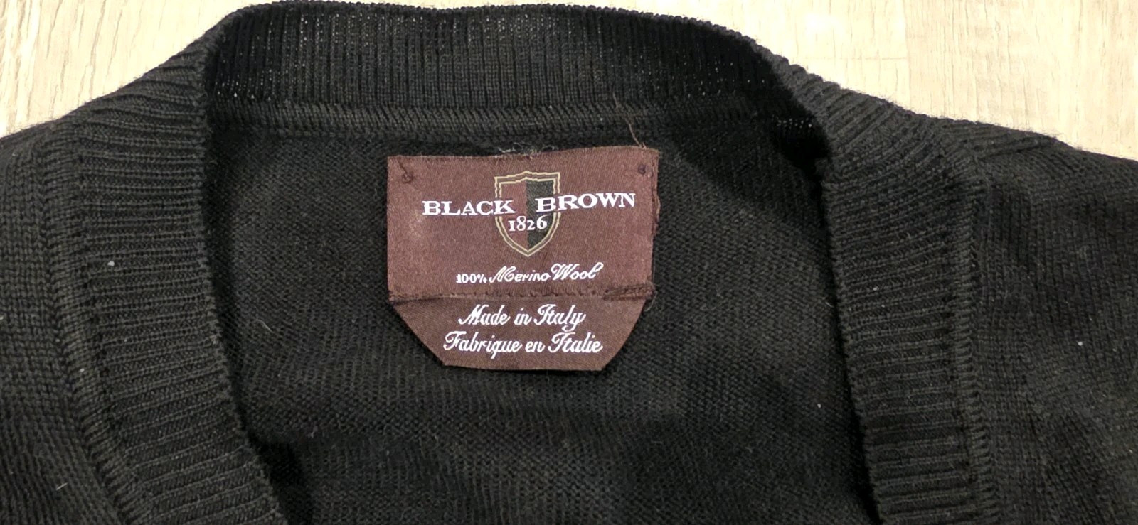 как выглядит Black Brown Mens Merino Wool Black Cardigan Vest, Size Large фото