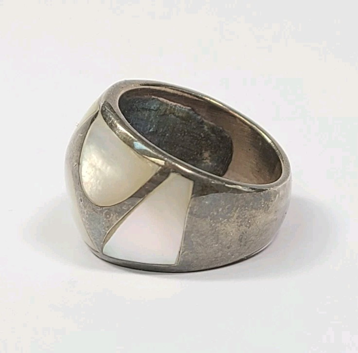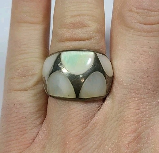Sterling Silver Mother of Pearl Inlay Ring Size 8.25