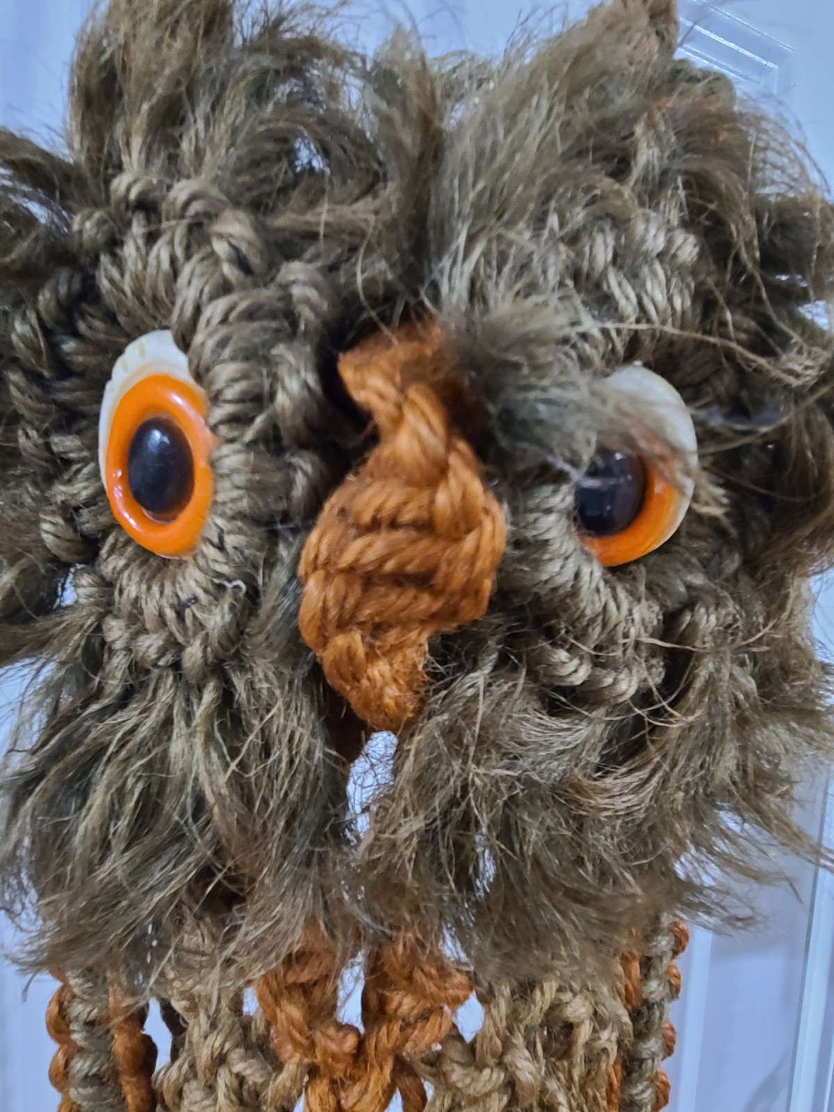 • Vintage 1970 s Large Macrame Owl Wall Hanging