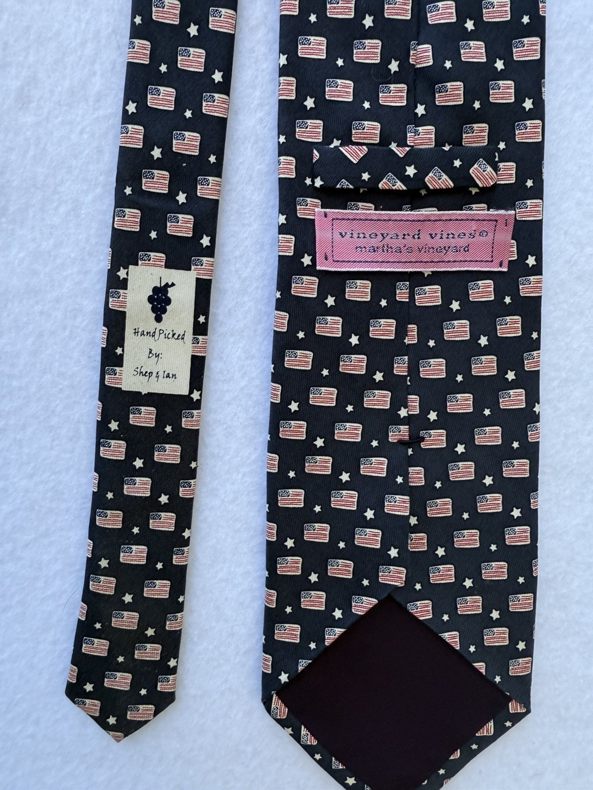 Vineyard Vines Mens Tie 100 Silk Blue Red White America Flags Made USA 3 W 60 L