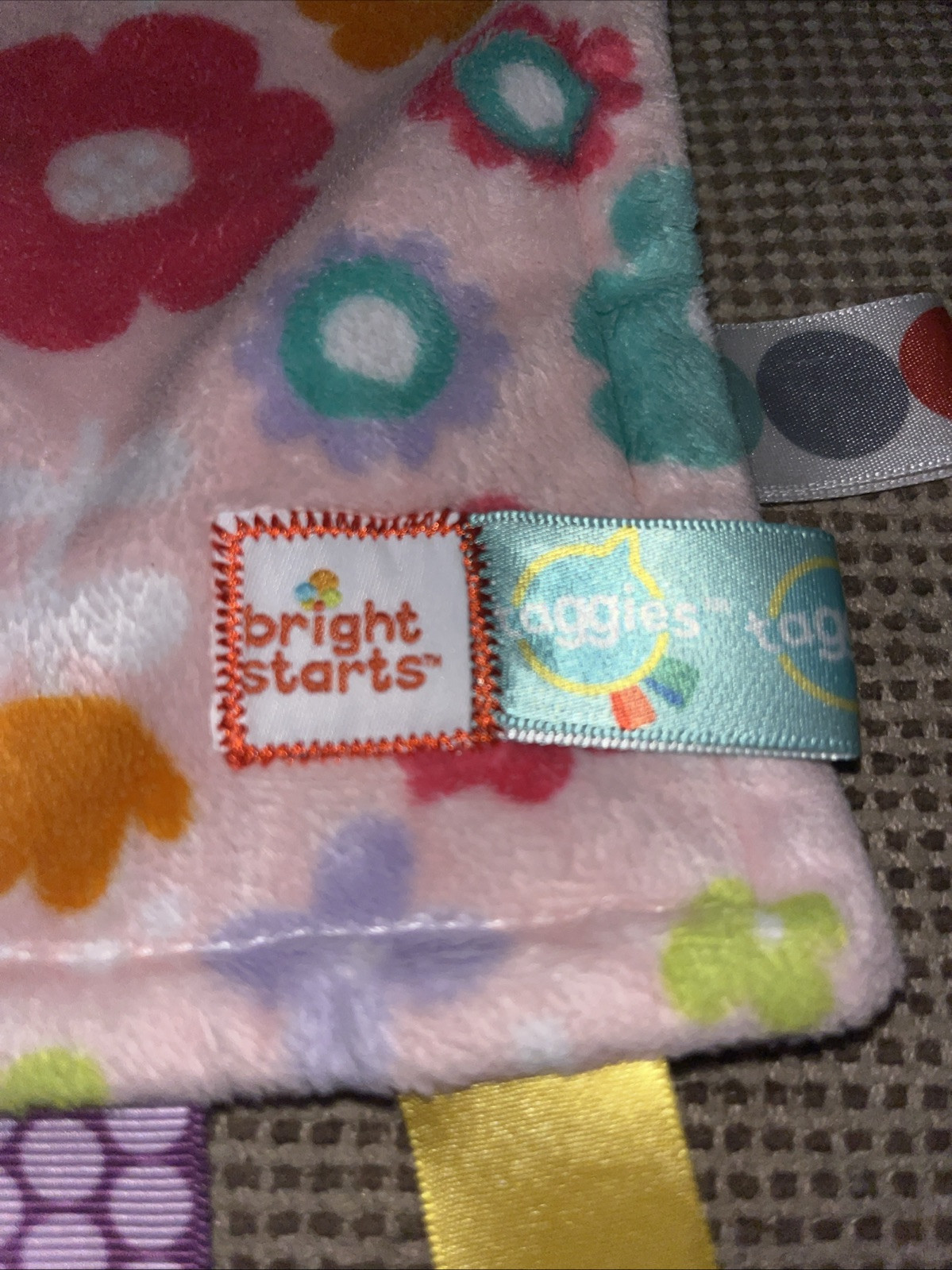 Bright Starts Taggies Security Blanket Baby Lovey Pink Flowers Floral Purple