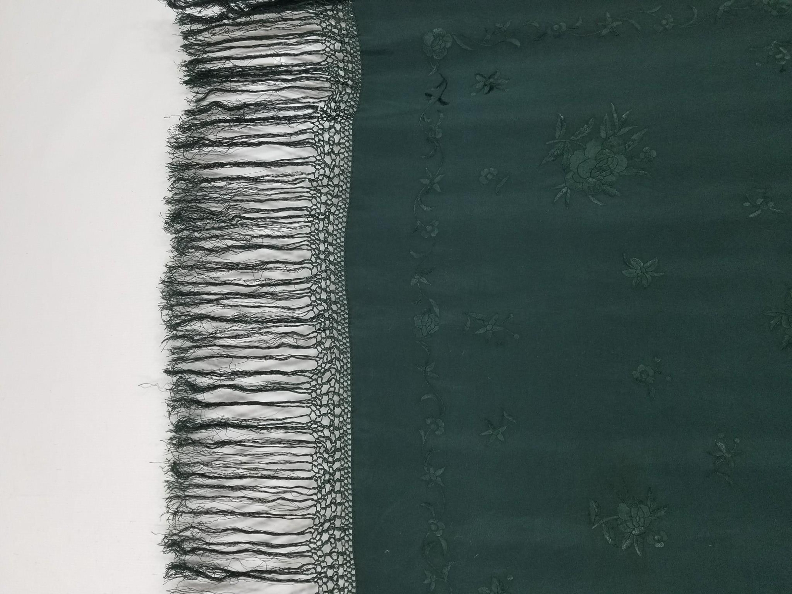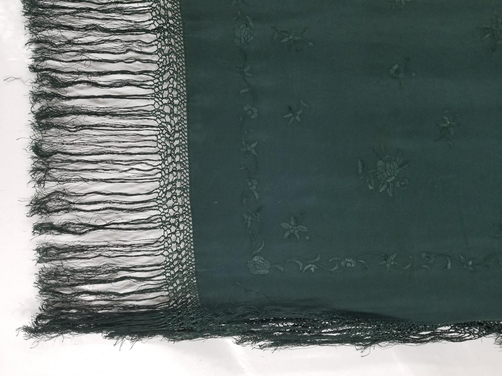 • Vintage Chinese Silk Hand Embroidered Floral Piano Shawl 42x39 inches