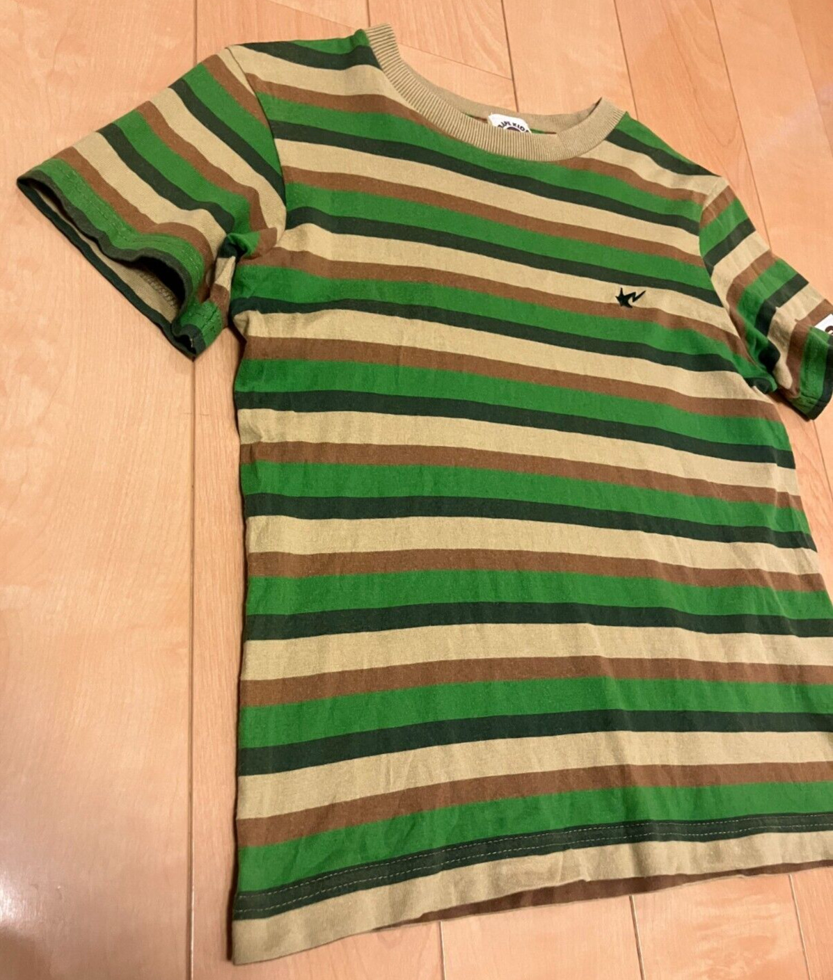 как выглядит A Bathing Ape Bape kids Short Sleeve T-Shirt 120 approx. 6T Striped Green cotton фото