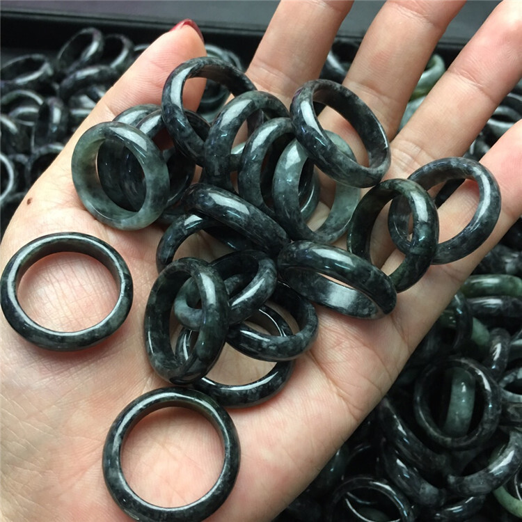 как выглядит Myanmar Natural A-grade Jade Black Chicken Jade Ring Random shipment фото