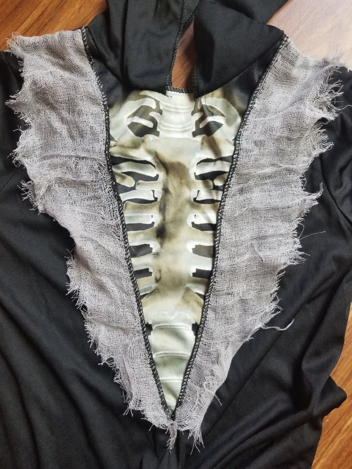 как выглядит Unisex Kids Medium 8 Black Grey Skelton Costume Halloween Scary Fringe Outfit фото