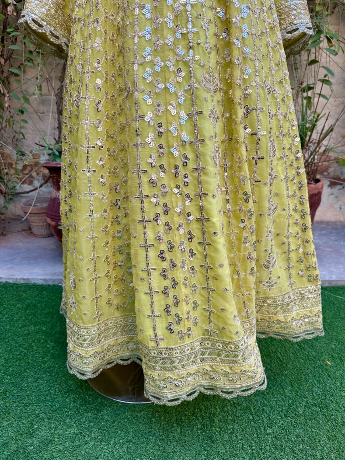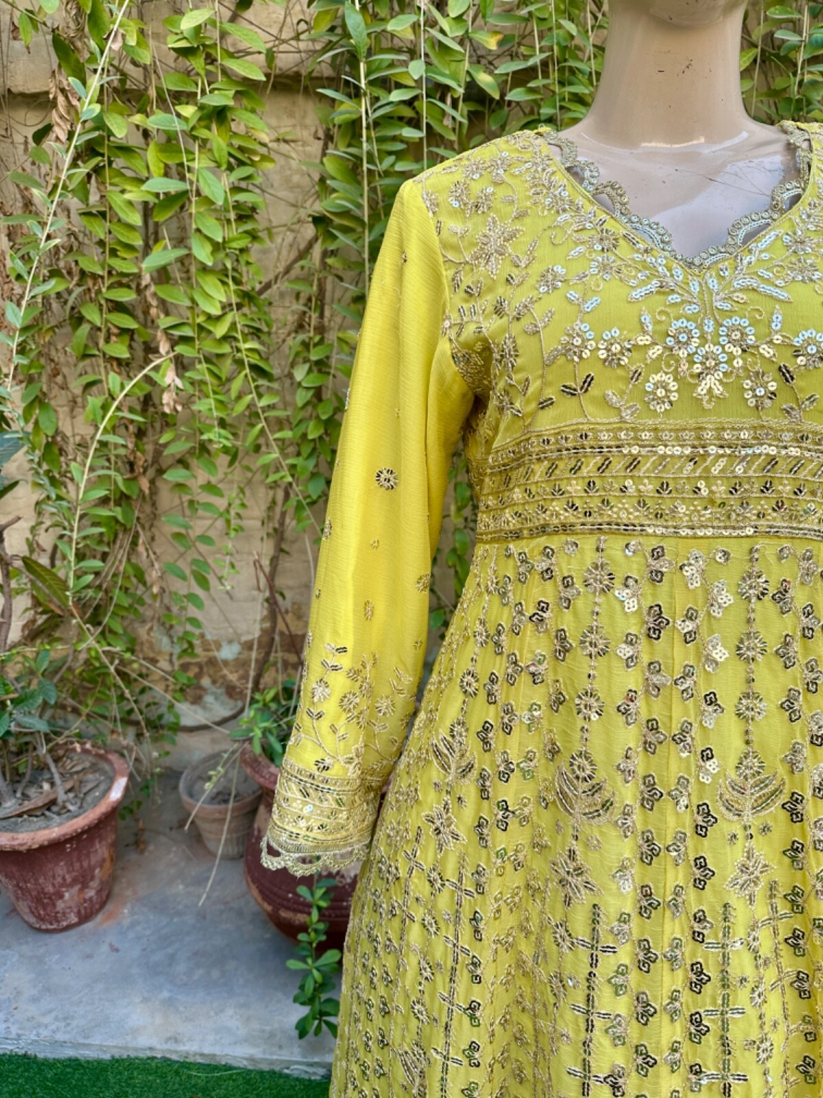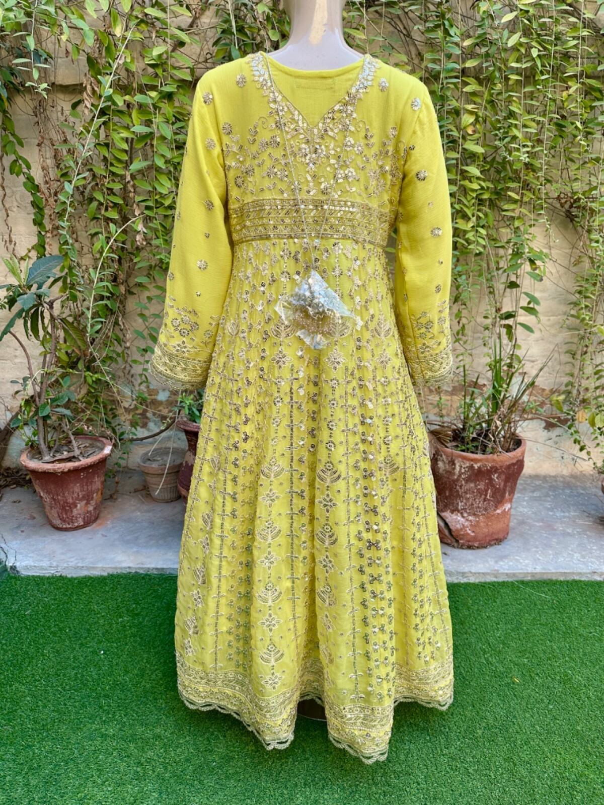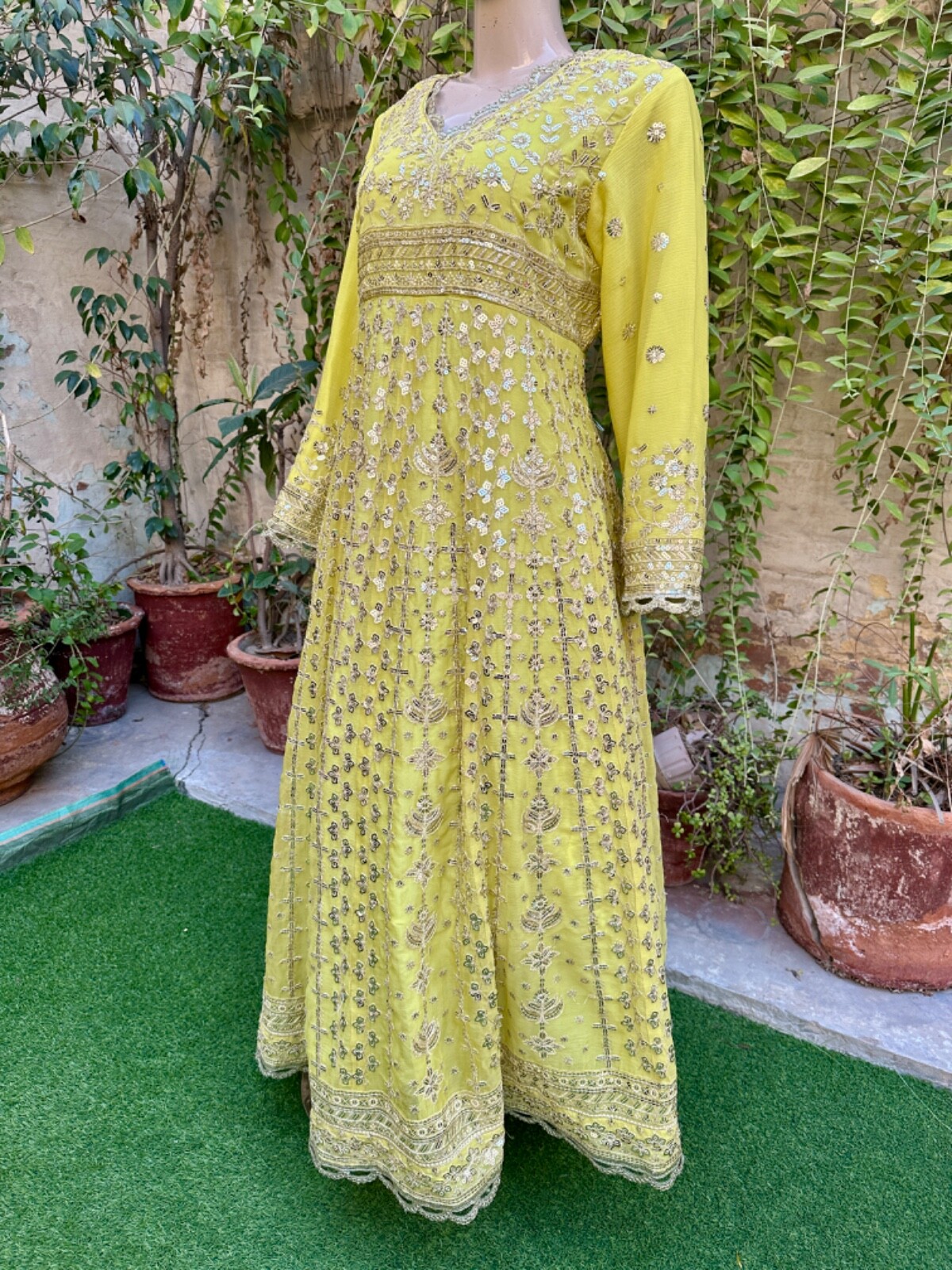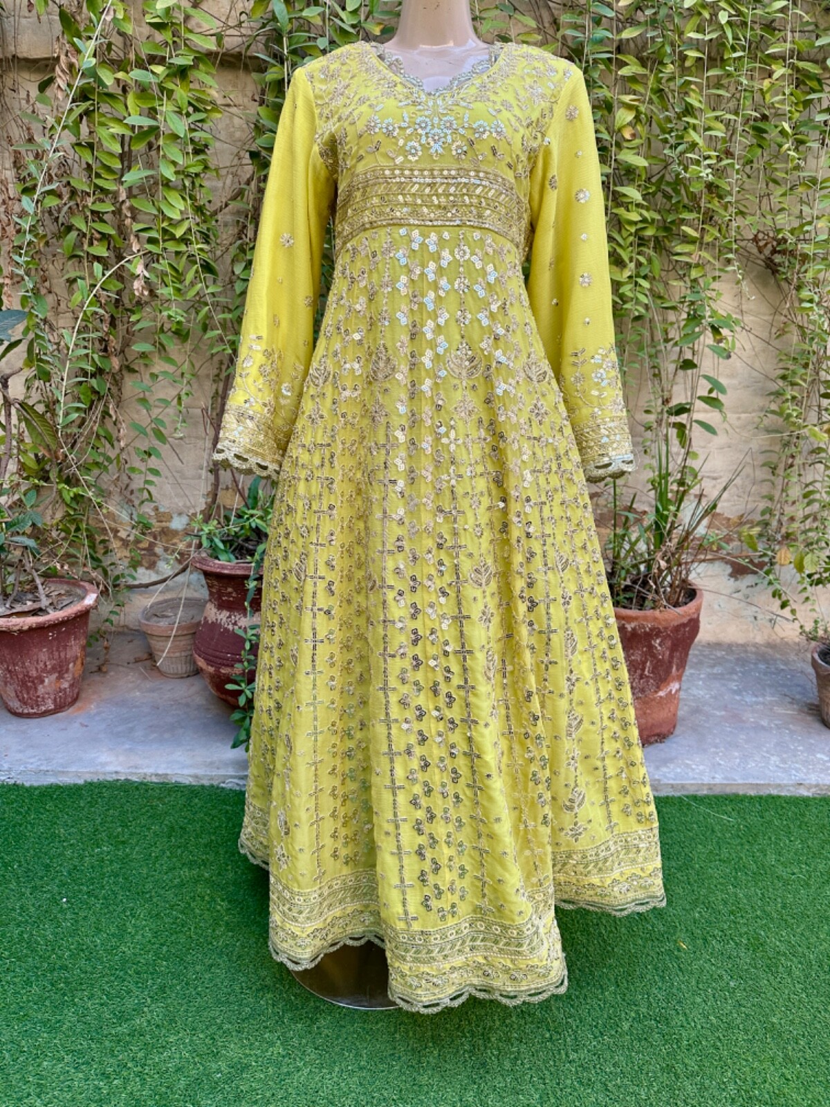 как выглядит Pakistani Light Yellow Long Maxi Style Embroidered Sequins Chiffon Dress,XL фото