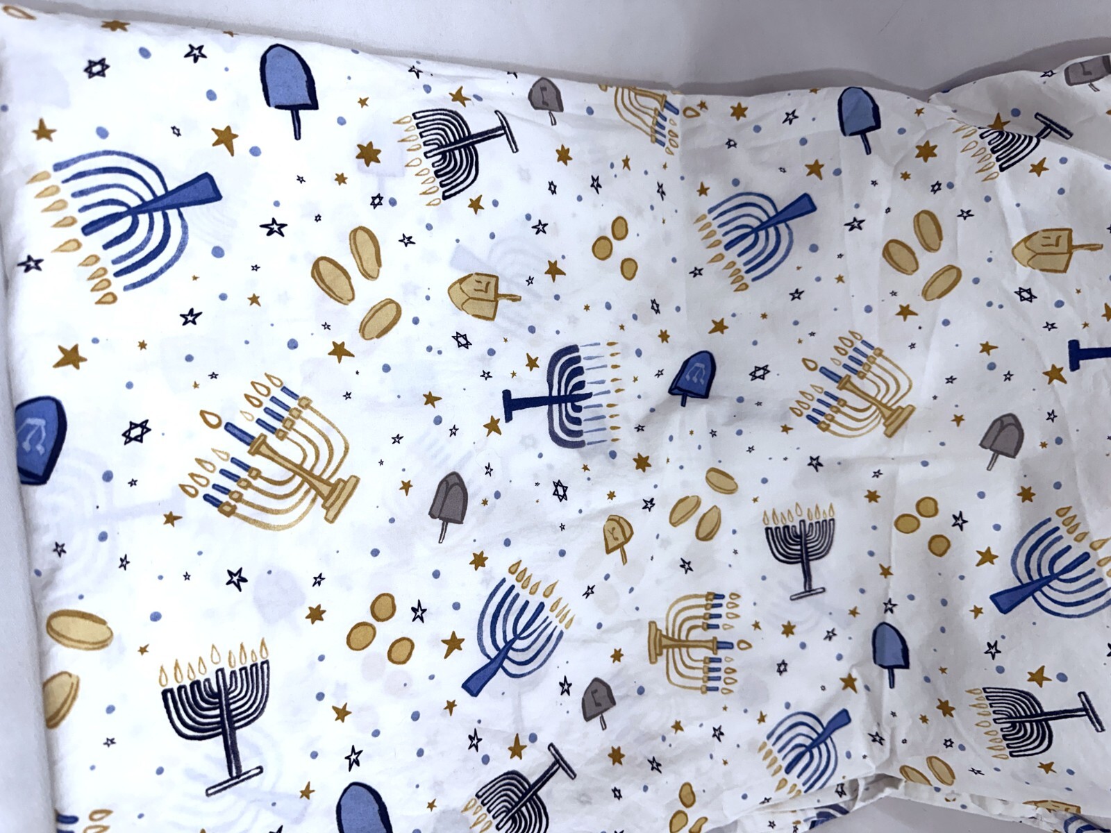 как выглядит Pottery Barn Kids Hanukkah Toddler Twin Flat Sheet Menorah Dreidel фото