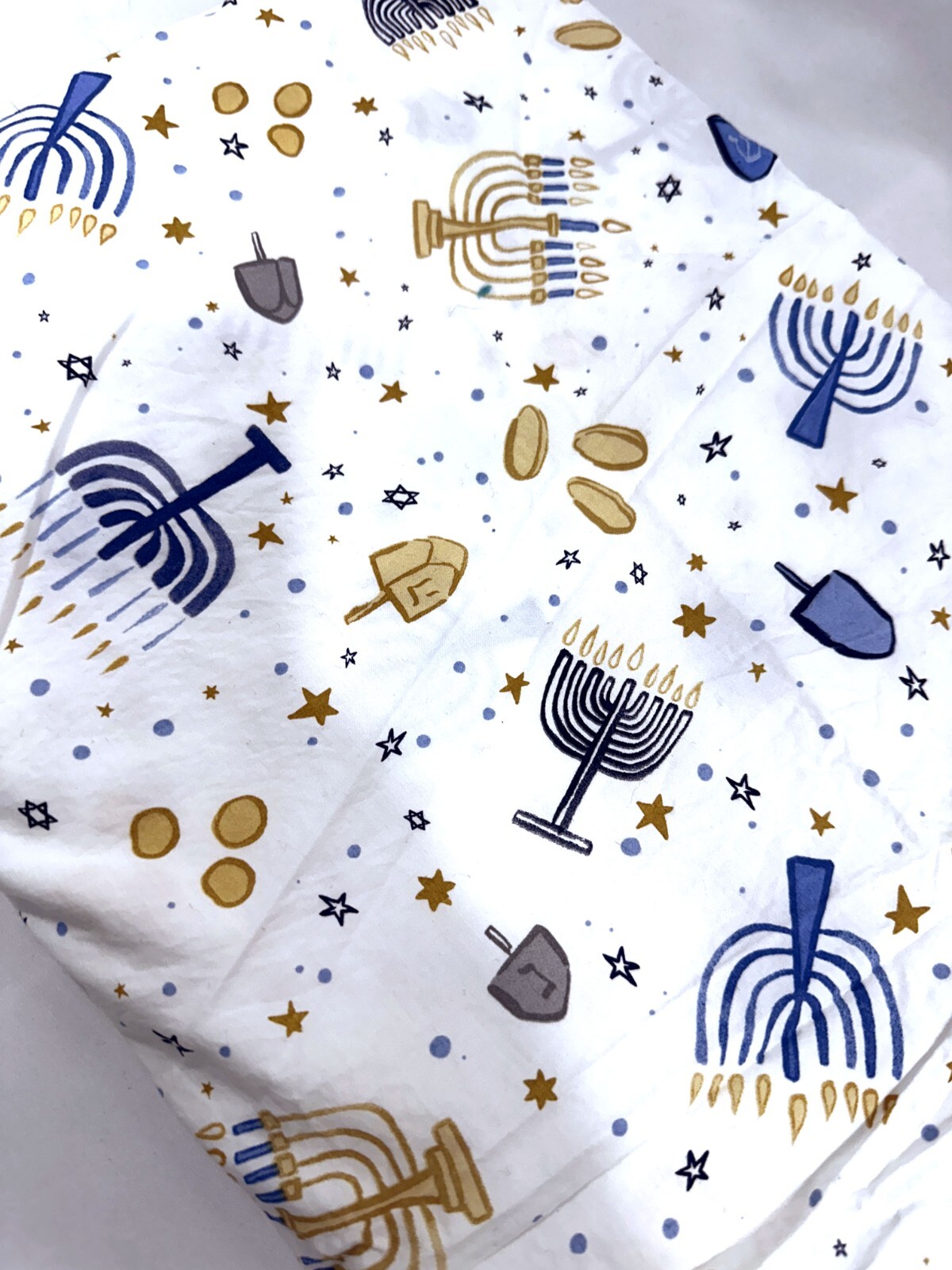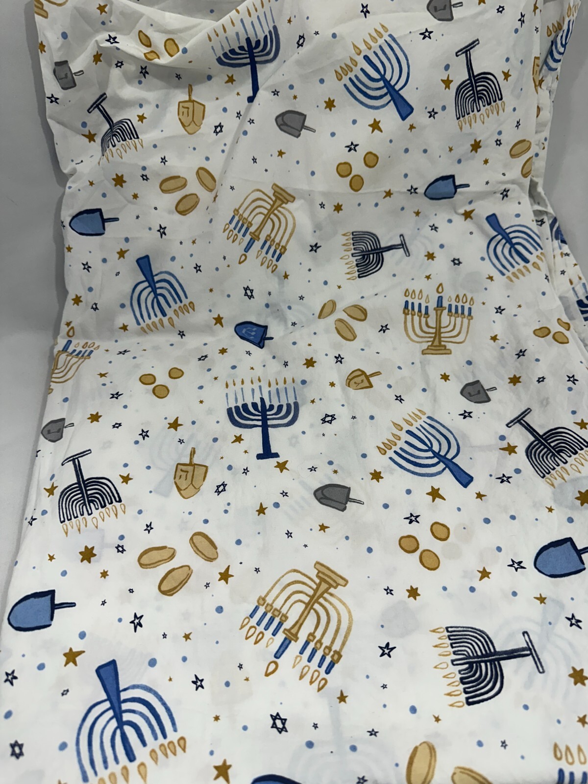 Pottery Barn Kids Hanukkah Toddler Twin Flat Sheet Menorah Dreidel