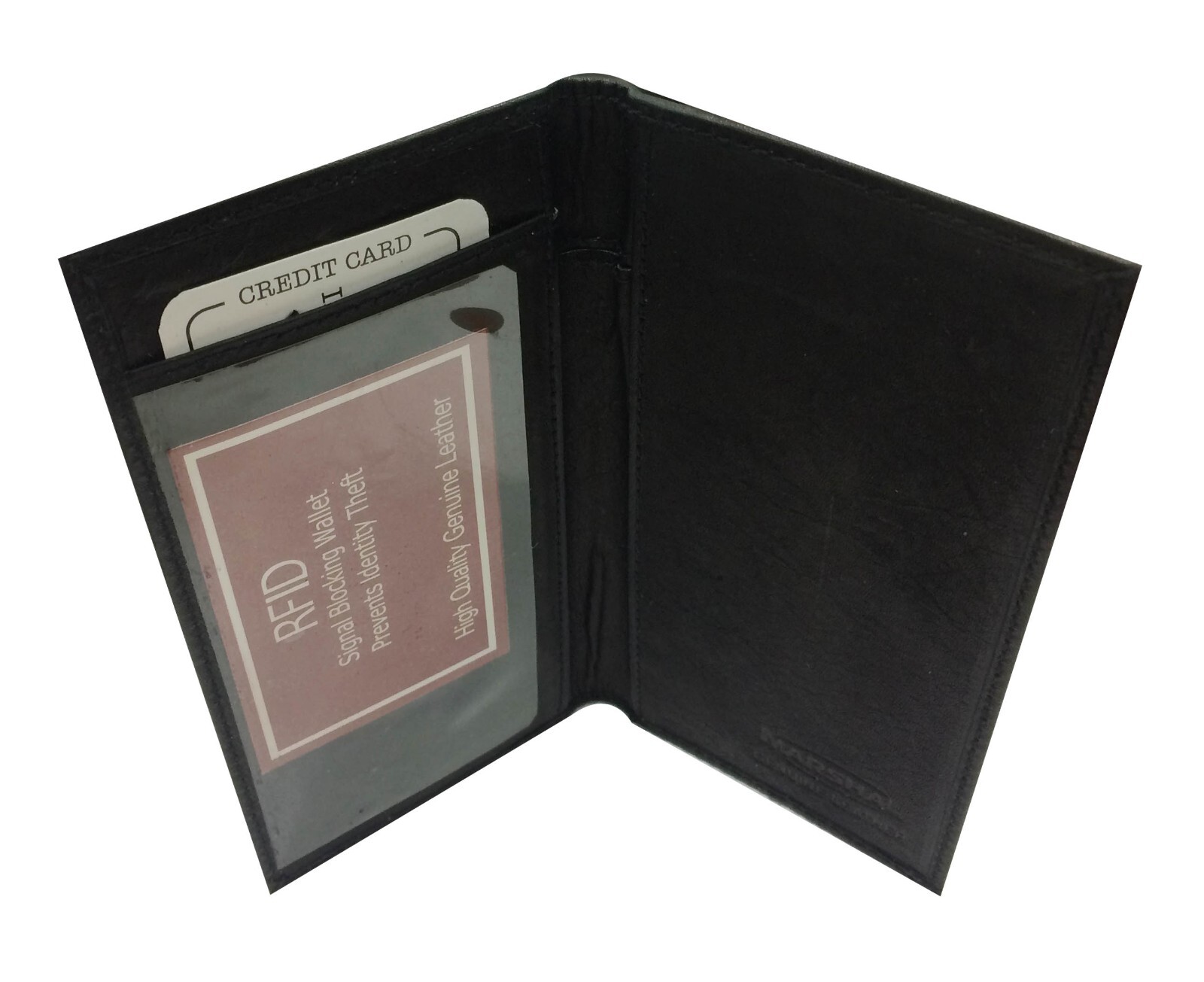 как выглядит RFID Black Genuine Cowhide Leather Plain Checkbook Cover Simple Card Wallet фото