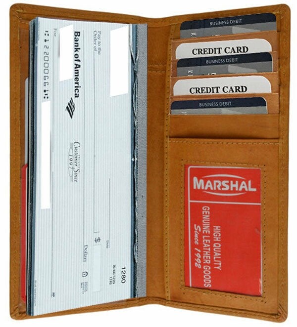 как выглядит Tan Genuine Cowhide Leather Checkbook Cover Organizer Premium Wallet Men Lady фото