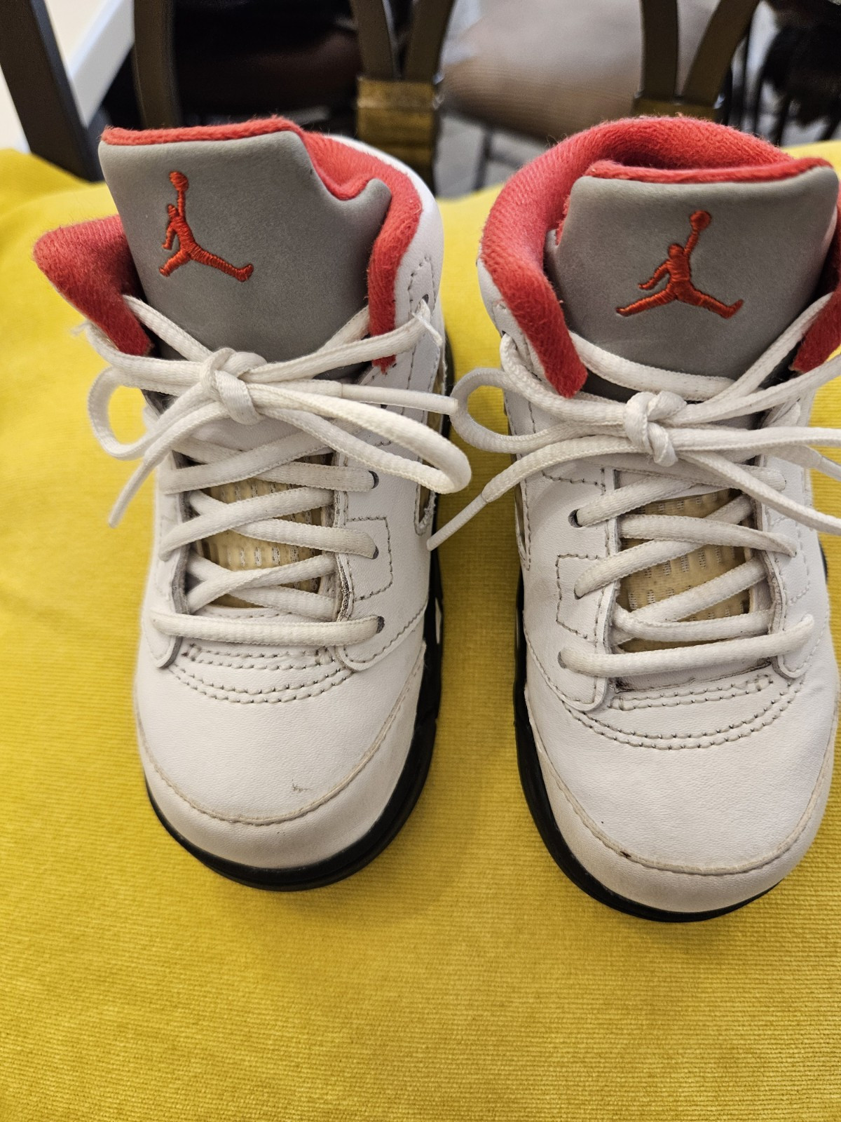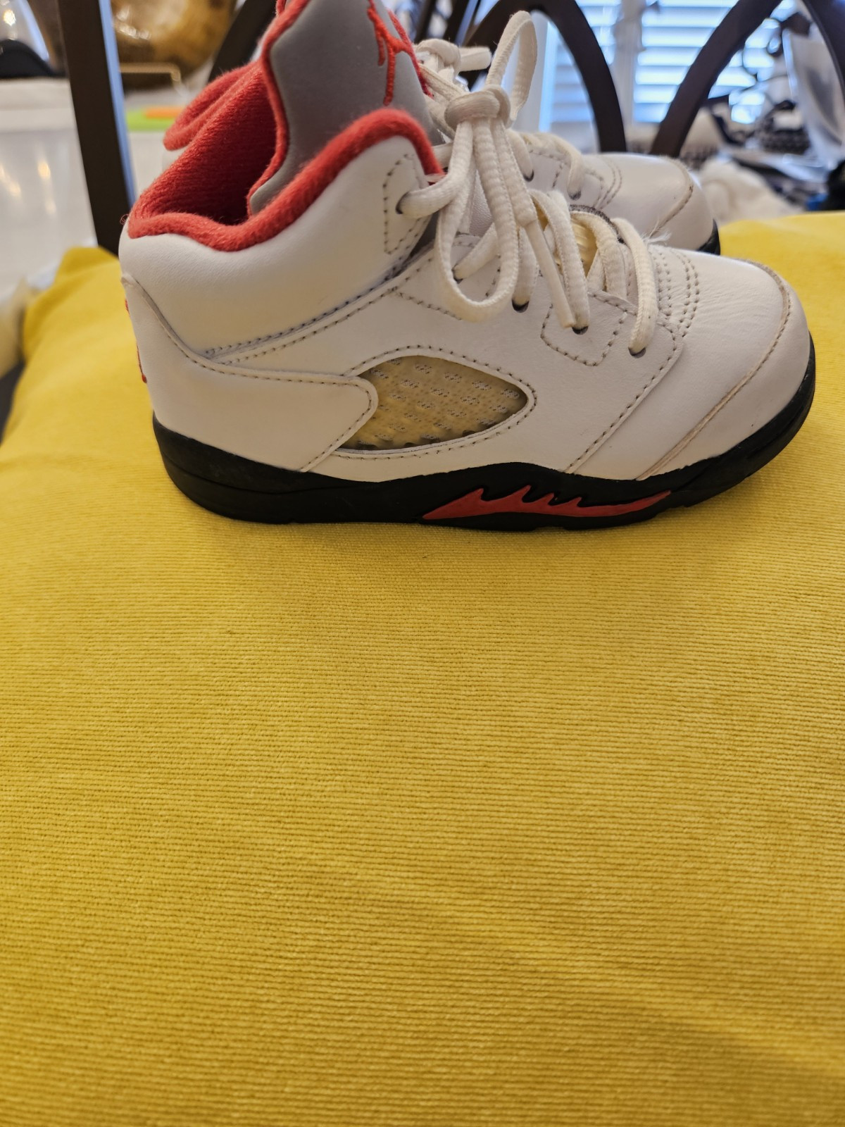 как выглядит NIKE AIR JORDAN 5 RETRO TODDLER SIZE 6C WHITE RED BLACK SNEAKERS 440890-100 фото