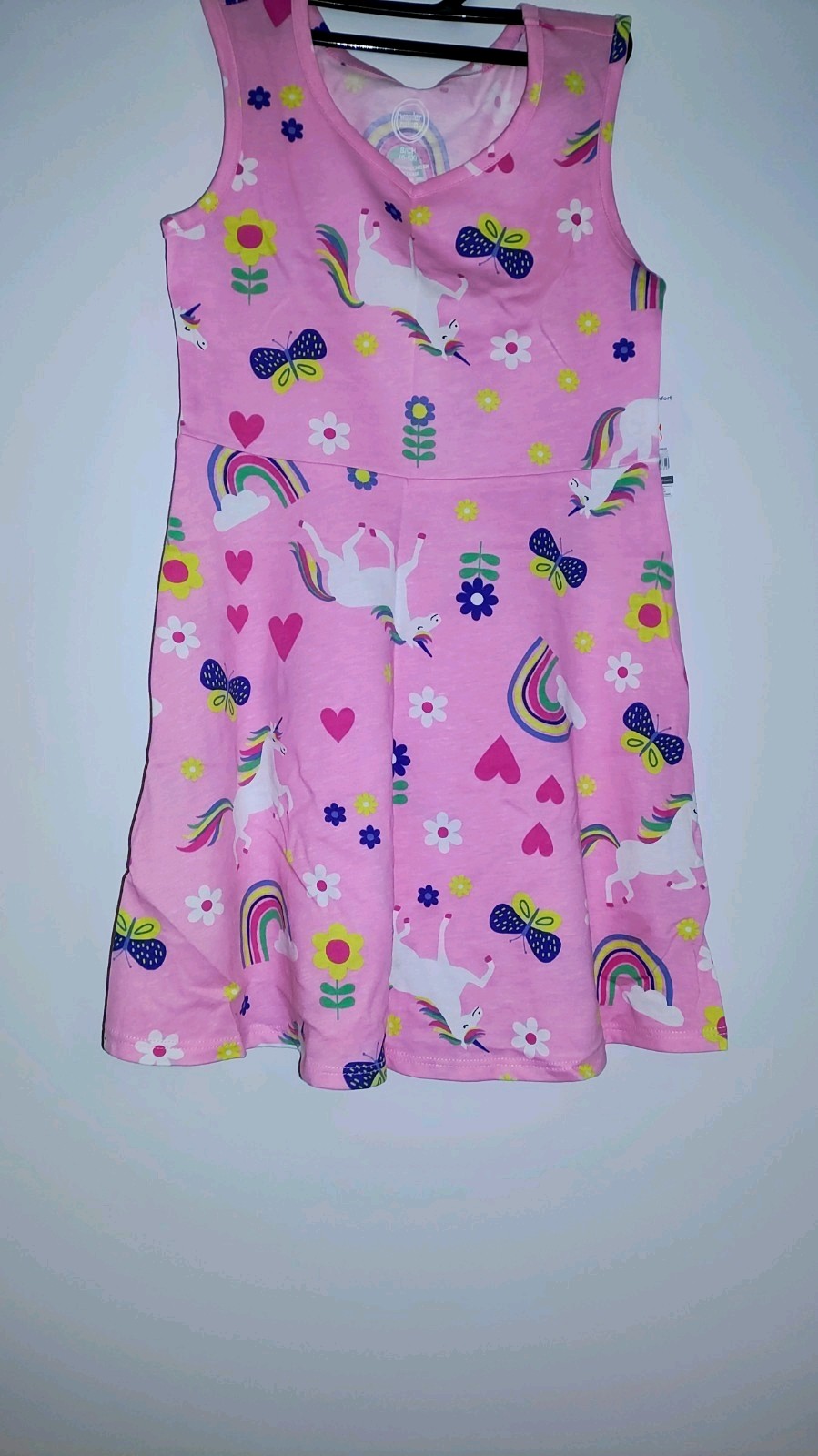 как выглядит New Wonder Nation Girls M Medium 7/8 Pink Dress Rainbows Flowers Unicorns фото