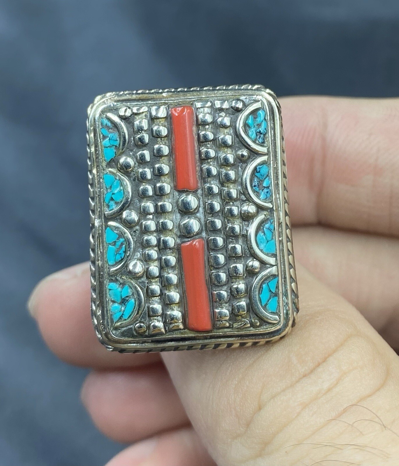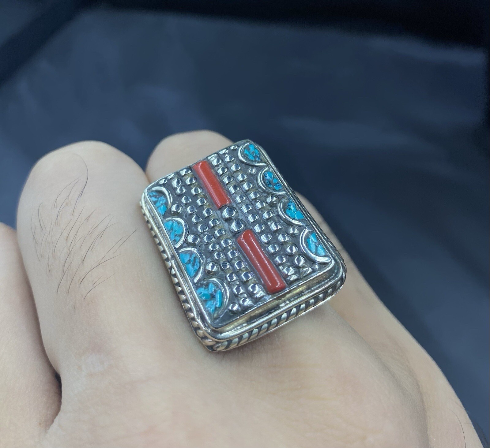 как выглядит Tibetan Turquoise Coral Handmade Nepali Ring фото