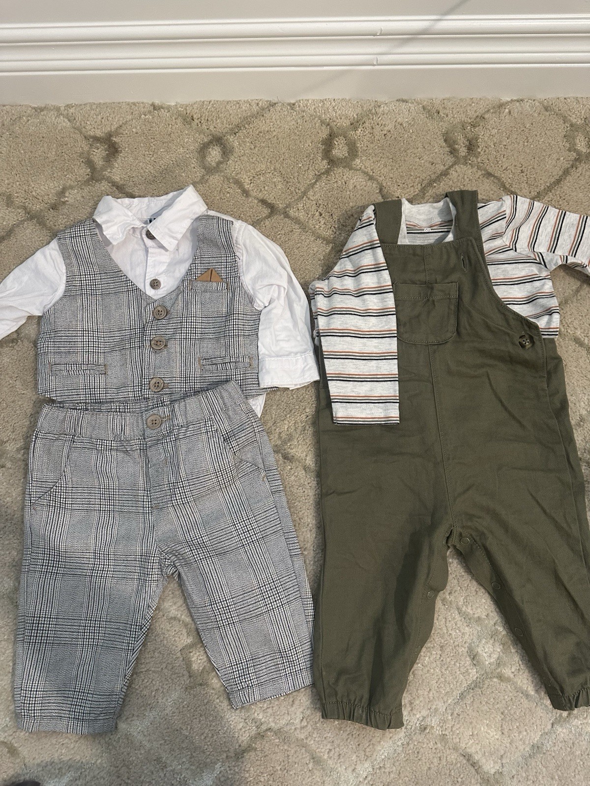 Little Lad Boy 4 Piece Outfit With Bow Tie Shirt Pants 3/6 M 2 Different