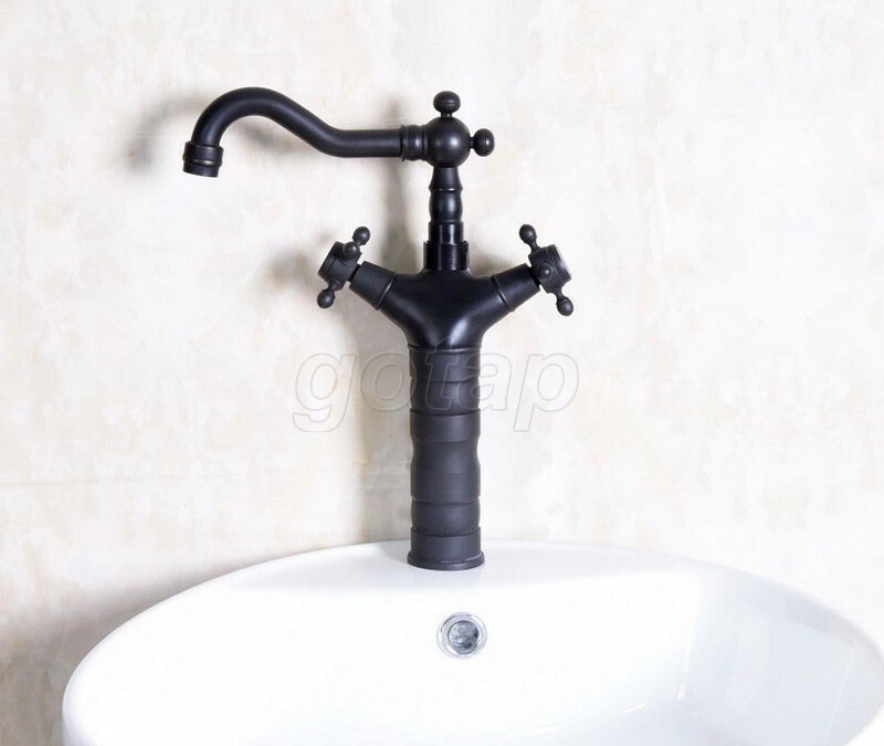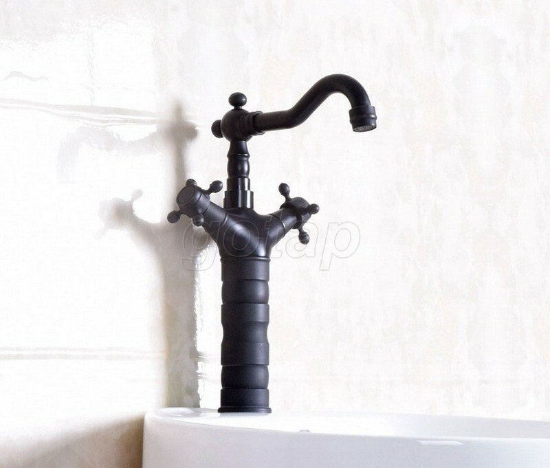 Swivel Black Brass 2 Cross Handles Kitchen Bathroom Basin Sink Faucet Mixer Tap