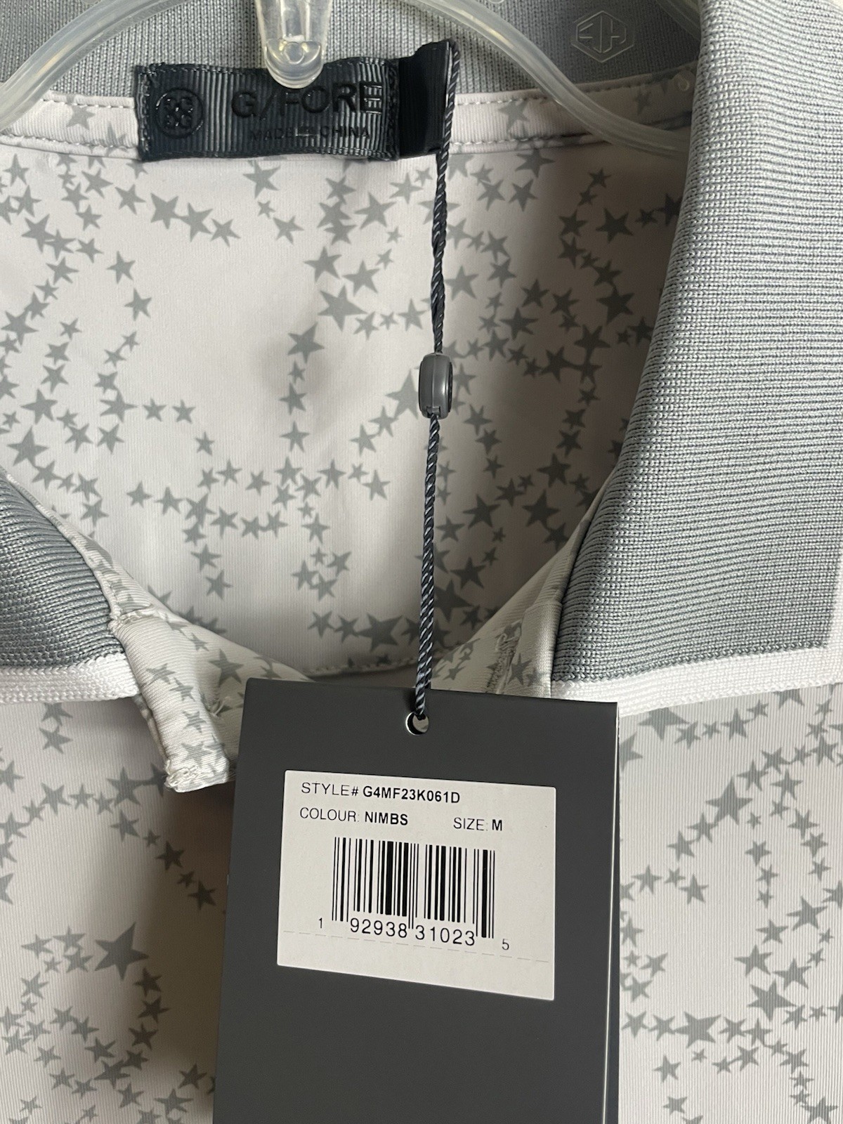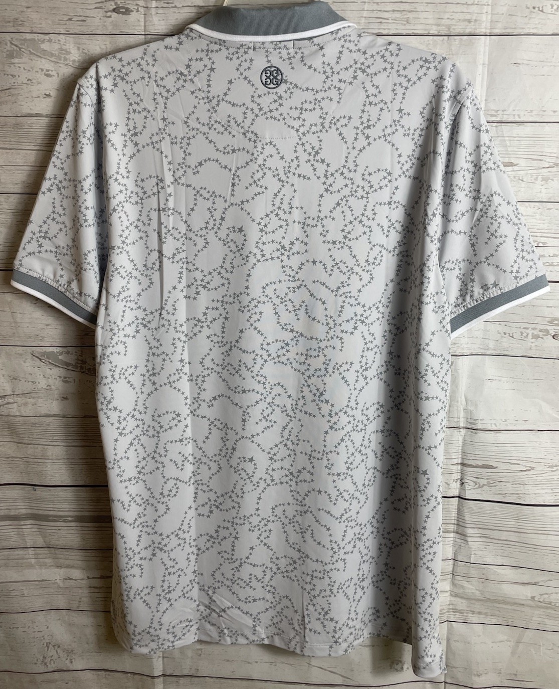 G Fore G4 Mens Medium Polo Shirt White Gray Stars G4MF23K061D NWT 120
