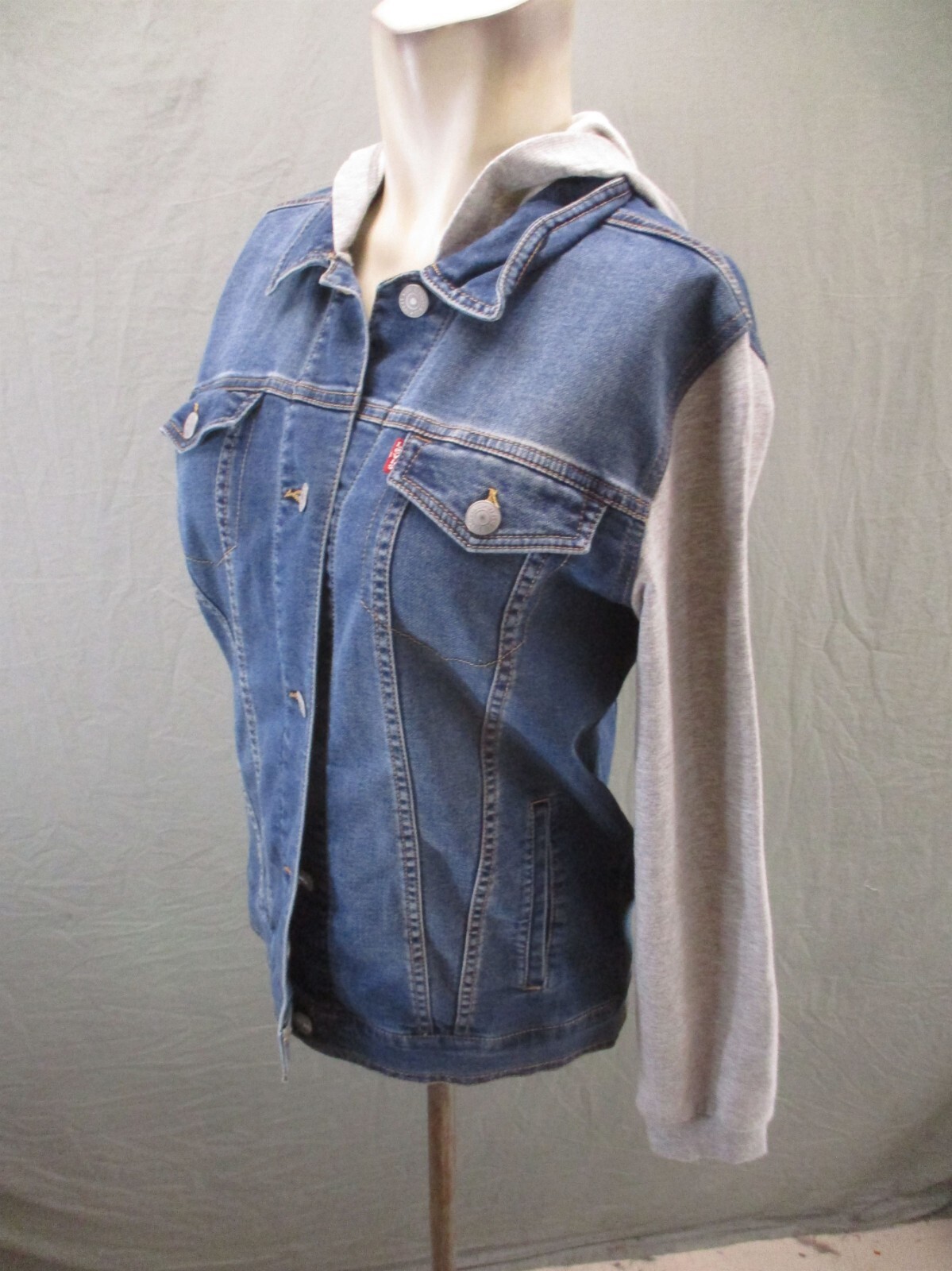 как выглядит Levis Size L 12-13 Kids Cotton Blend Hood Pocket Button Up Denim Jacket 702 фото