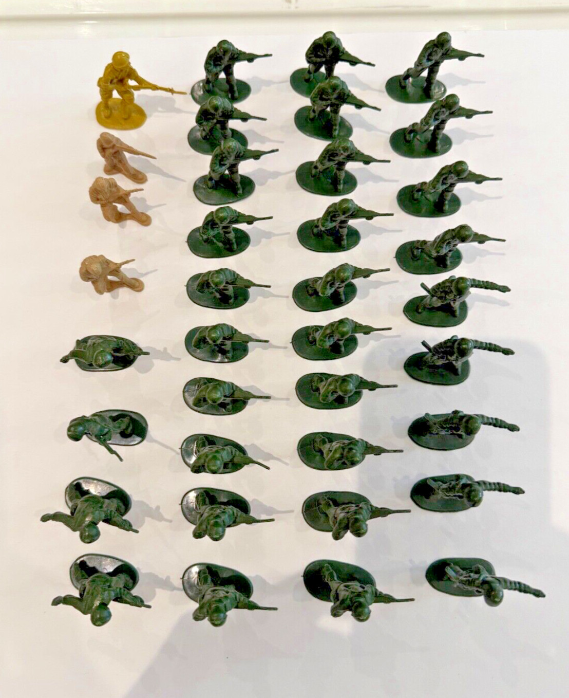 как выглядит Lot of 33 misc green plastic army men; 2" tall WWII soldiers bonus 4 beige men фото