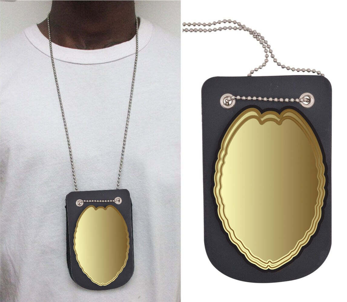 как выглядит RFID Blocking Black Genuine Leather Conceal Carry Security Officer Badge Holder фото