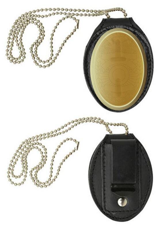 как выглядит RFID Blocking Black Genuine Leather Conceal Carry Security Officer Badge Holder фото