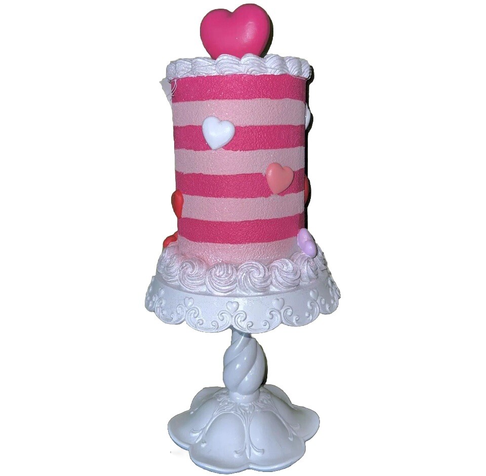 Pink Valentines Day Faux Cake Strips Hearts Pedestal Tabletop Decor NWT