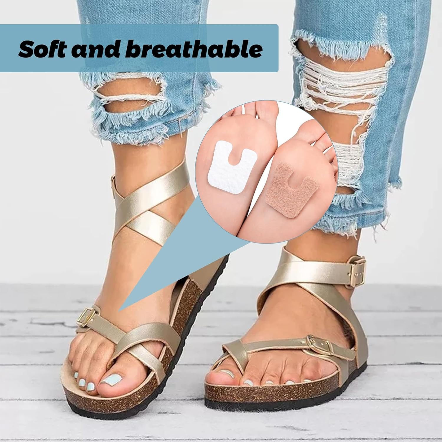как выглядит 36 Pieces U Shaped Felt Pads Horseshoe Metatarsal Callus Beige and White фото