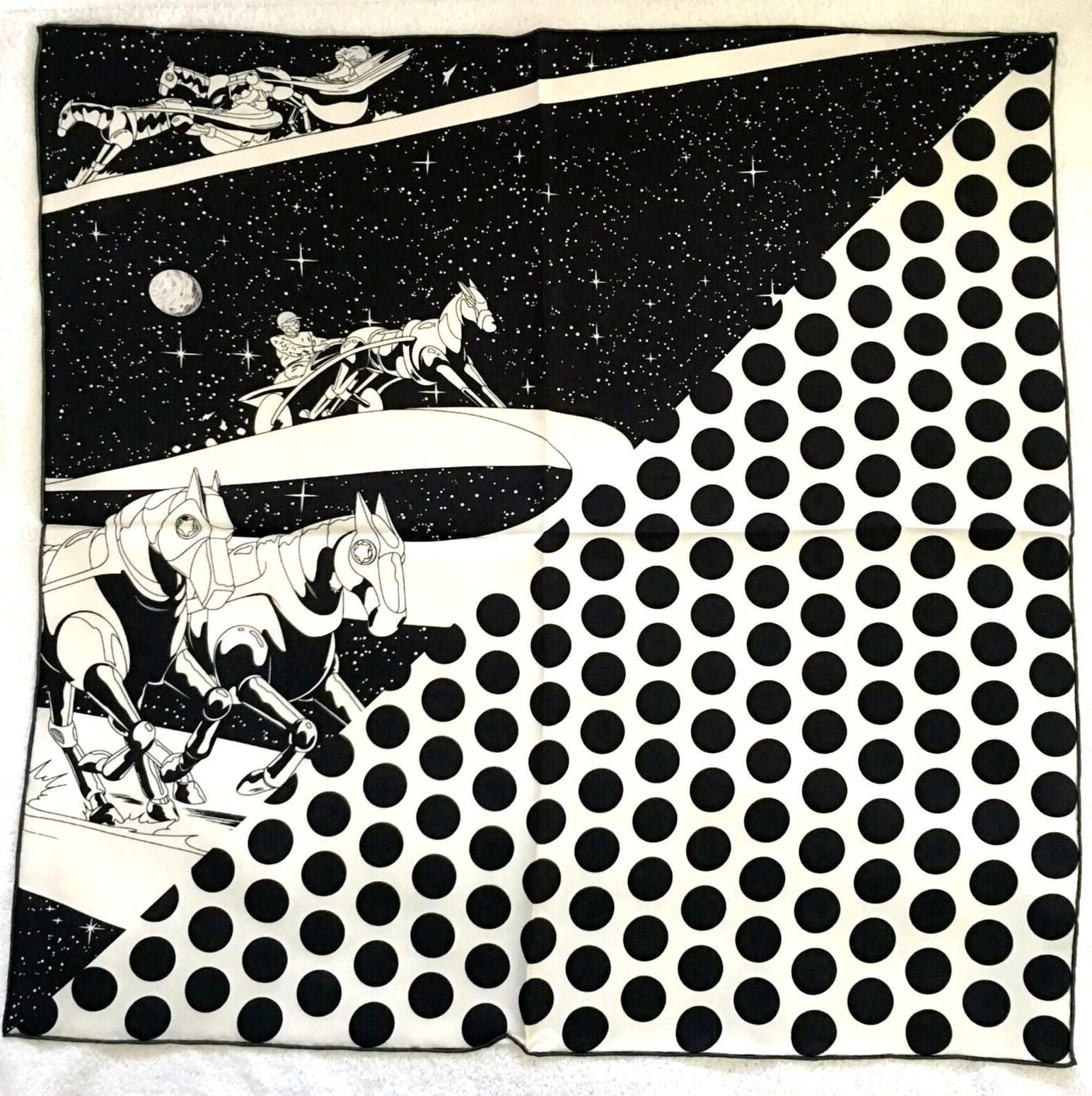 26x26Dots Horse Print Pure Mulberry Twill Silk 14momme Scarf 65x65cm5-17