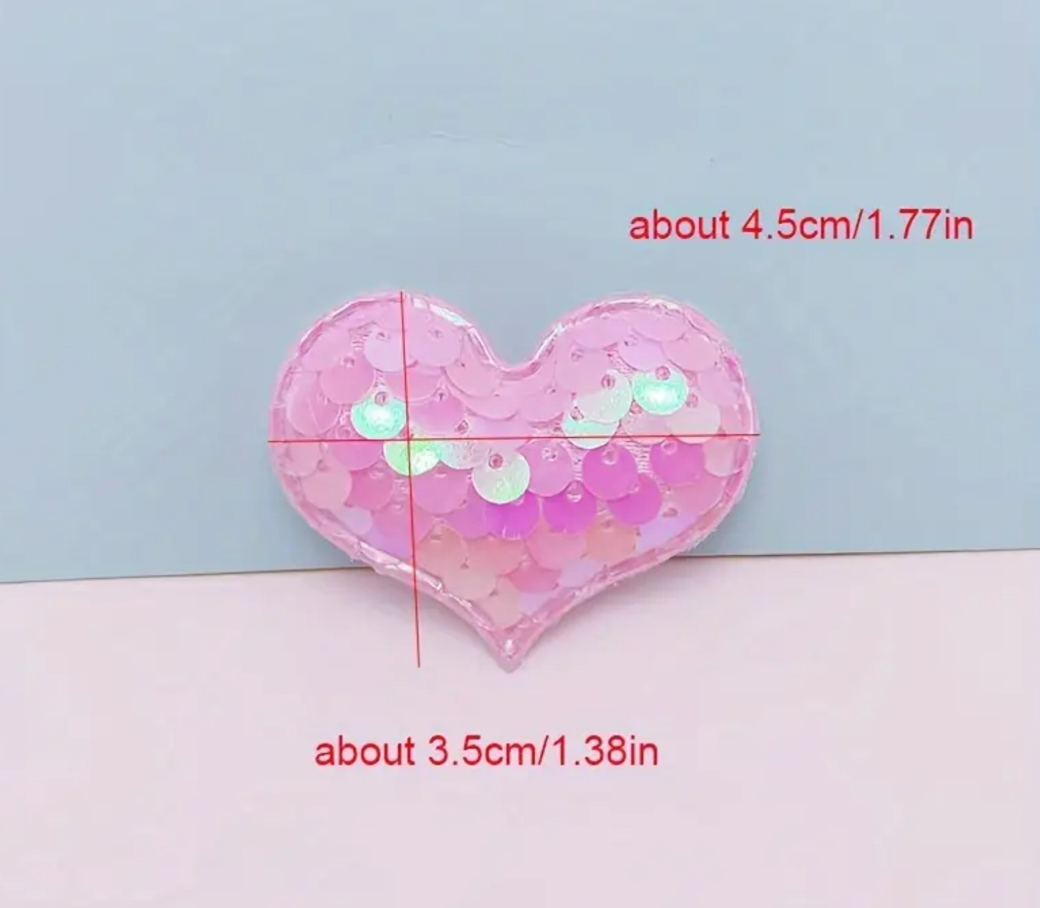 6pc Large Sequin HEART Fabric Shoe Charms for Crocs or Shoe Laces