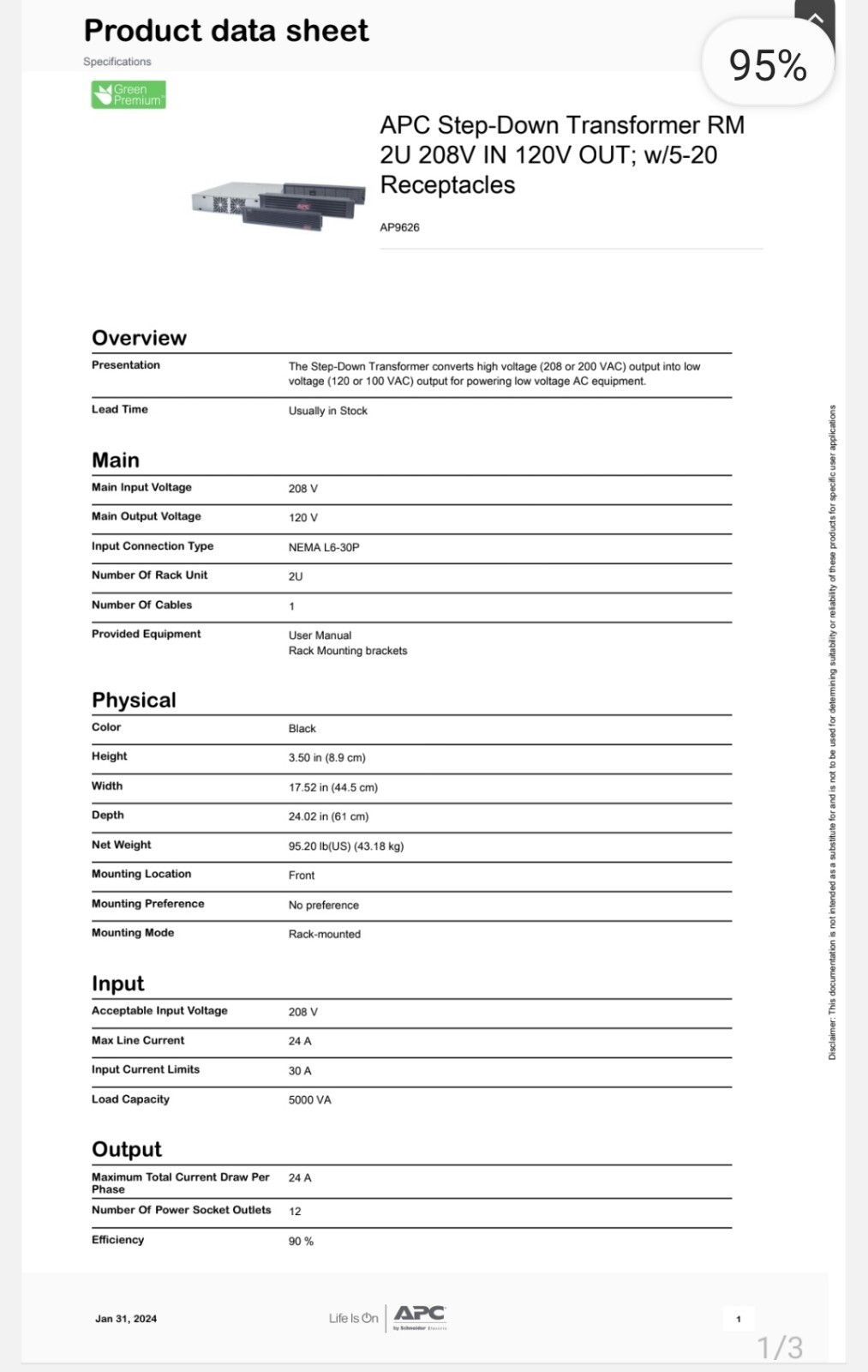 как выглядит New APC AP9626 Step-Down Transformer Rack Mountable Black фото