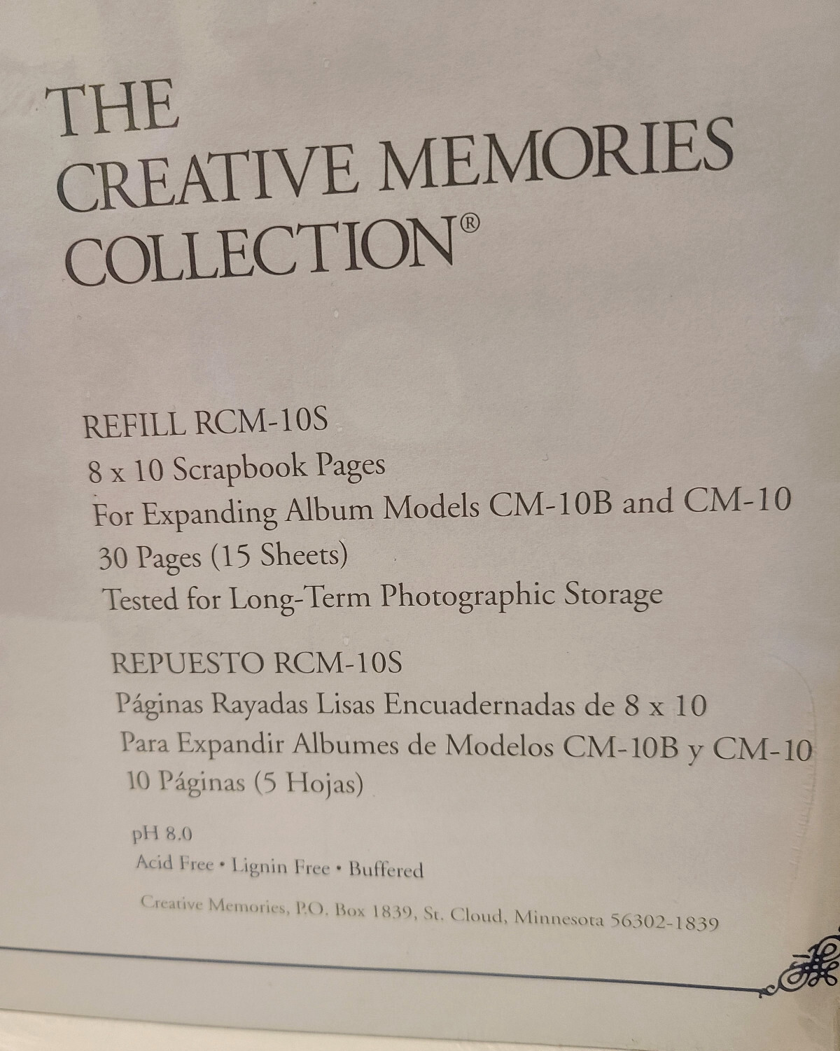 Creative Memories 8x10 Scrapbook White Pages Refill RCM-10S 15 Sheets BONUS